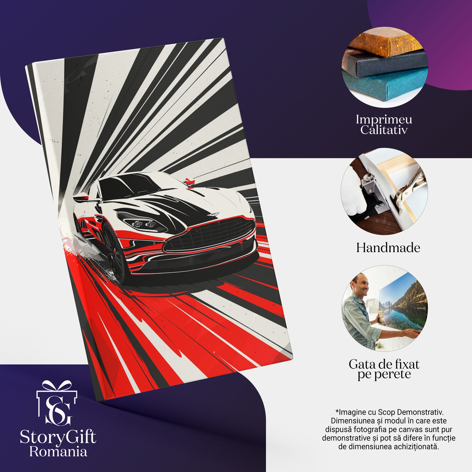 Tablou Canvas Perfect pentru Camera Baietilor Pasionati de Masini, o Masina in Trei Culori Alb Negru si Rosu , Pictura Digitala - Tablou Canvas Signature de la StoryGift Romania