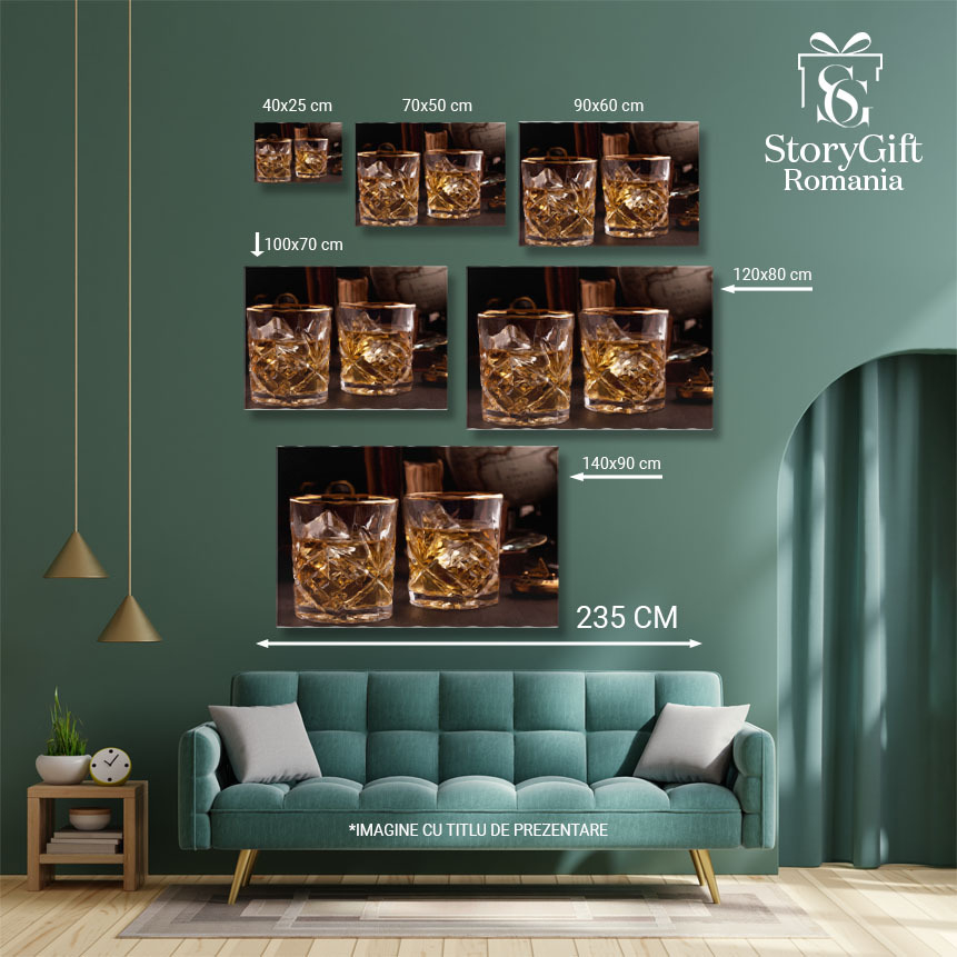 Tablou Canvas Rasfat Cu Bauturi Fine: Whisky si Brandy 40x25CM
