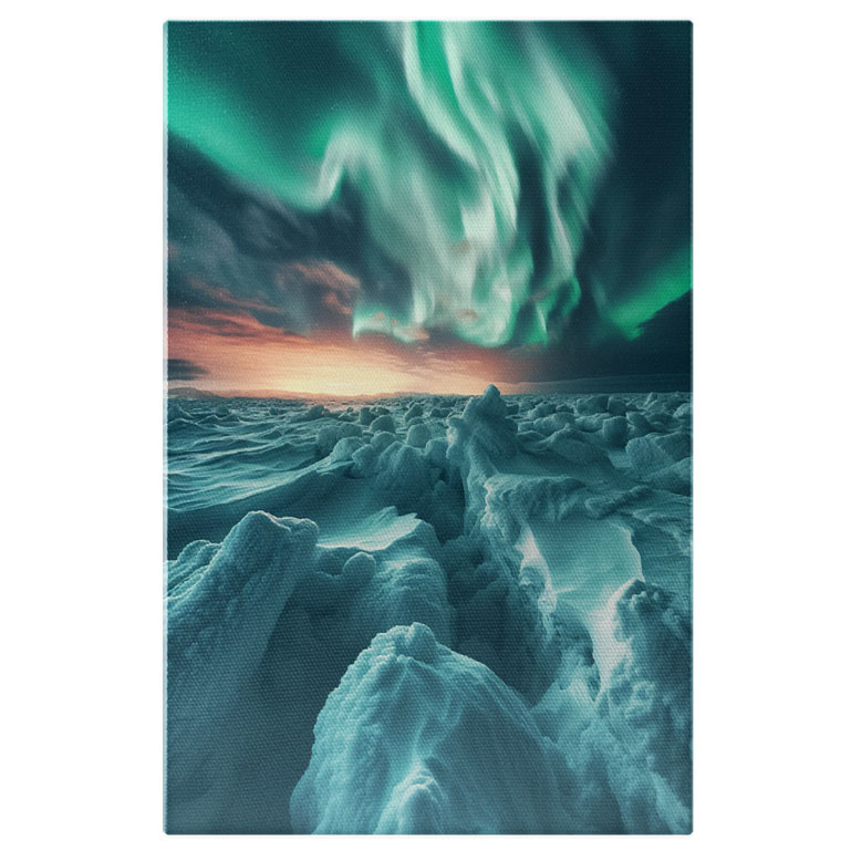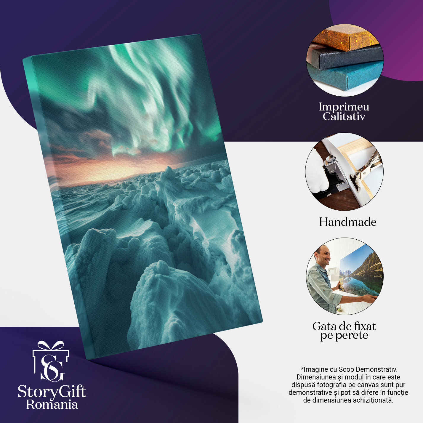 Tablou Canvas: Valuri Înghețate la Pol Frig și Iarnă Veșnică sub Aurora Boreală Peisaj Pictura Digitala 40x25CM