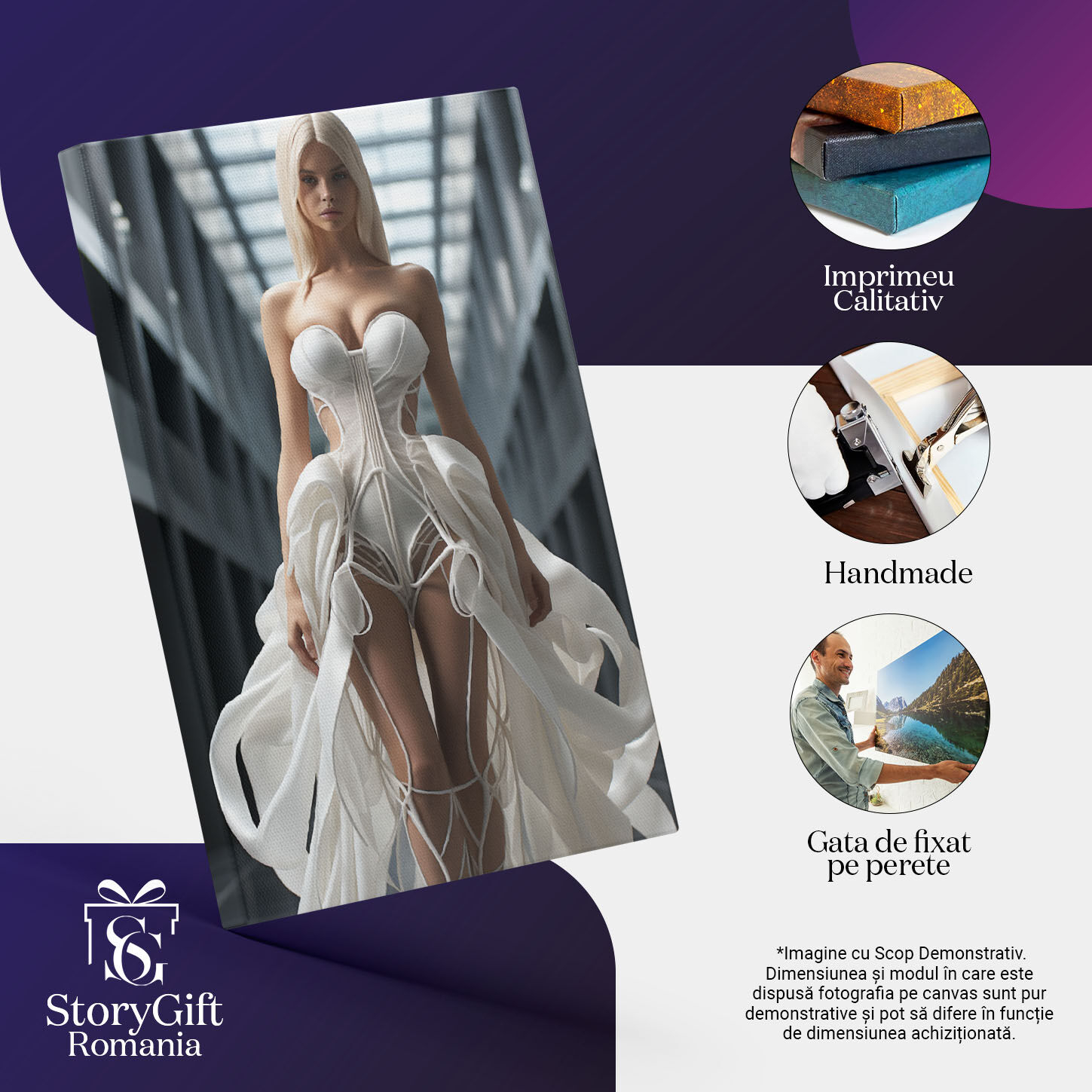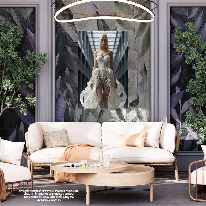 Tablou Canvas: portret barbie fata par bolond rochie moderna privire seducatoarte cladire stil inchisoare Pictura Digitala 40x25CM