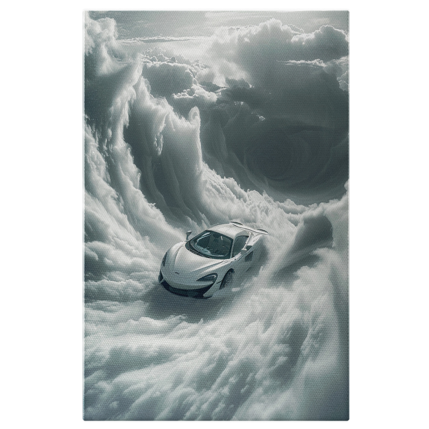 Tablou Canvas: Vartejul din Norii de Fum Alb Trecerea Masinii prin Tornada Pufoasa Lumina Pictura Digitala - Tablou Canvas Signature de la StoryGift Romania