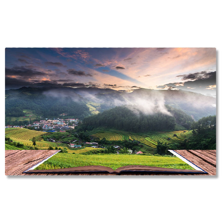 Tablou Canvas Imagine Conceptuala cu Campuri de Orez pe Terase Deschis, Carti, Weekend, Biblie, Apus 1438 40x25CM