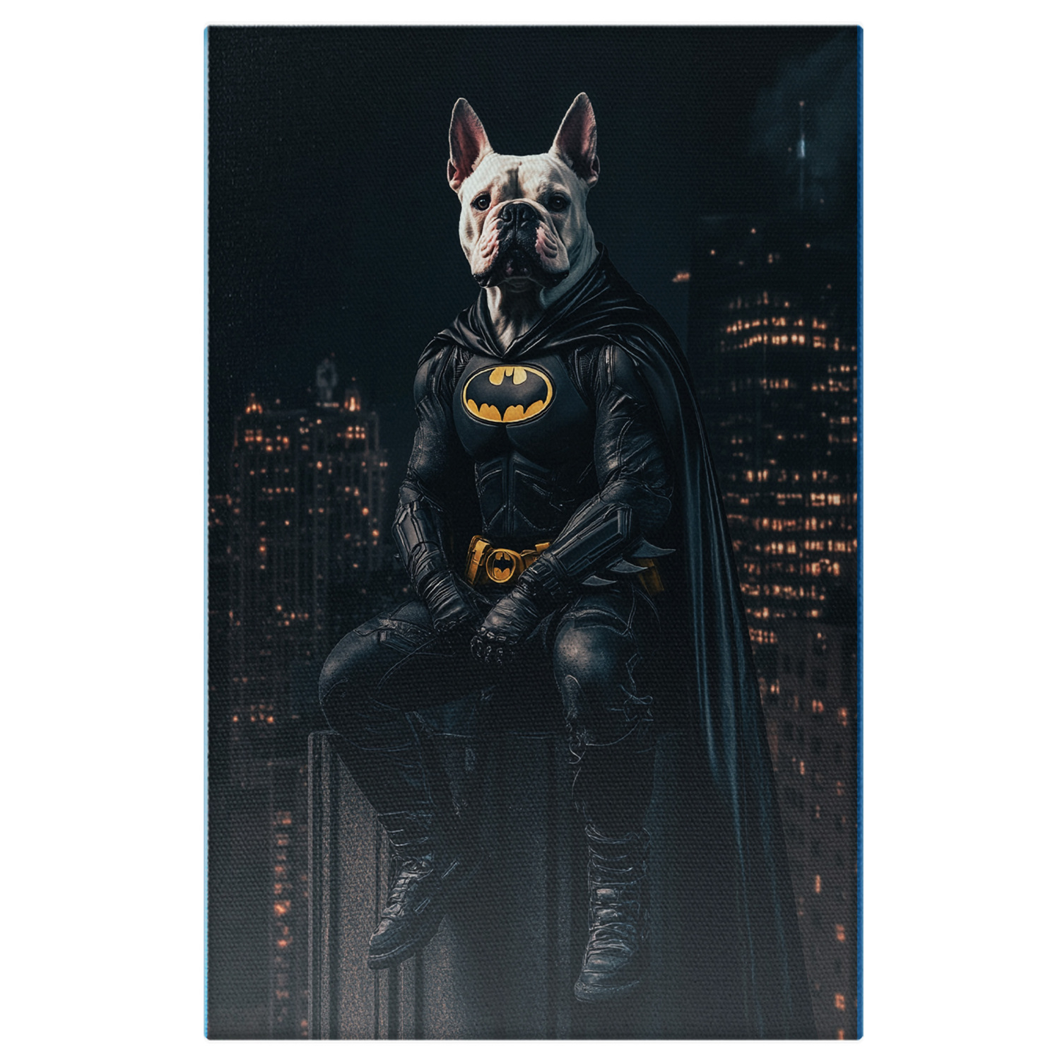 Tablou Canvas Personalizat Super erou Batman Deasupra orasului vegheaza noaptea, gata de lupta, costum negru cu capa 40x25CM