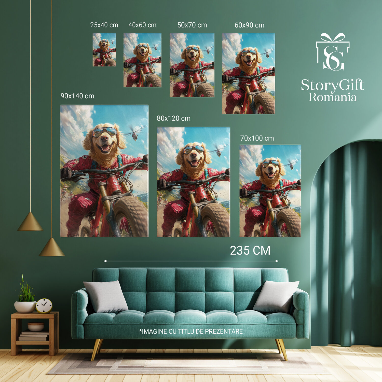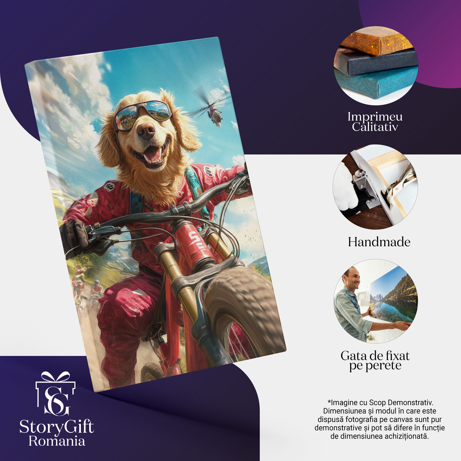 Tablou Canvas Personalizat Pilot de motocross in costum roz, iubotorii de viteza, adrenalina, elicopter, cursa 40x25CM