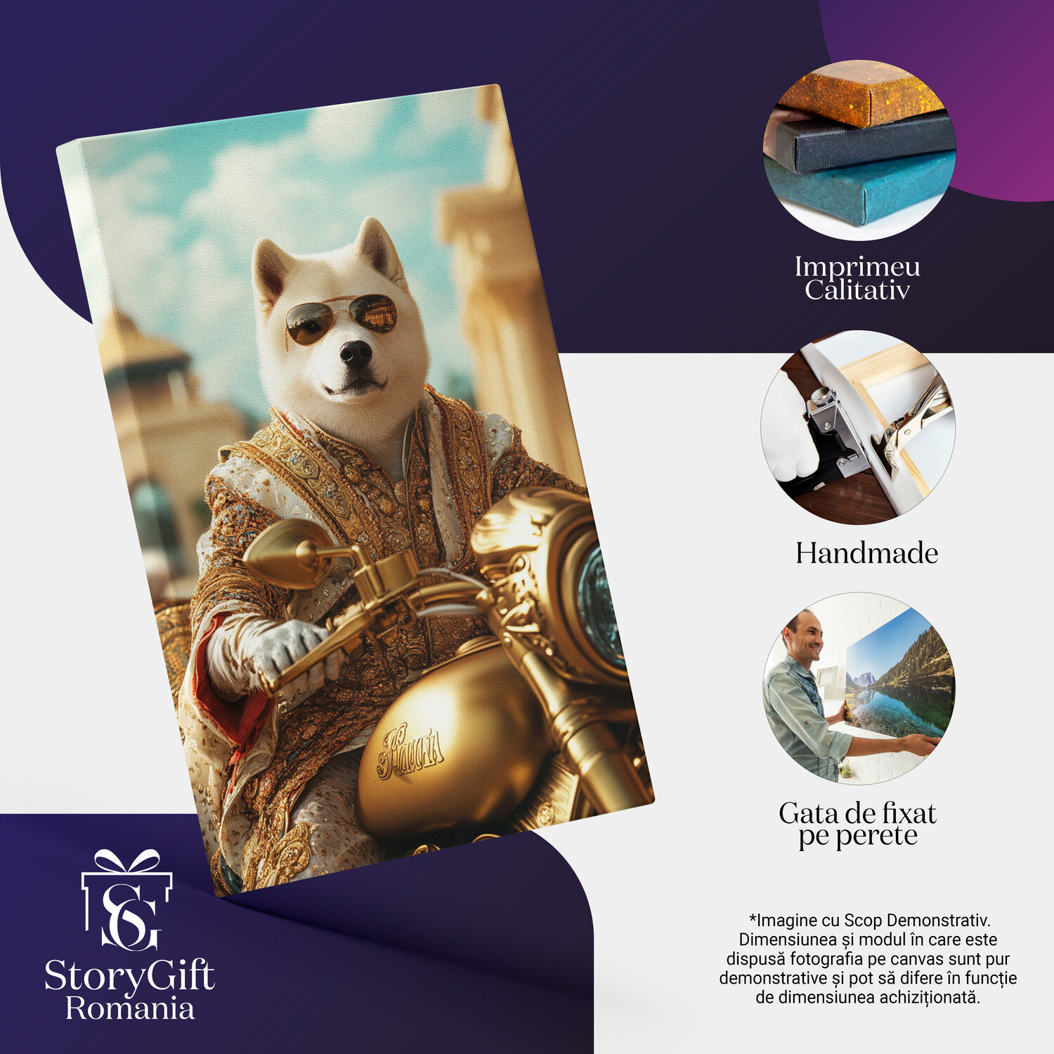 Tablou Canvas Personalizat Tinuta regala bogata in accesorii din aur, motocicleta vintige aurie, iubitorii de viteza 40x25CM