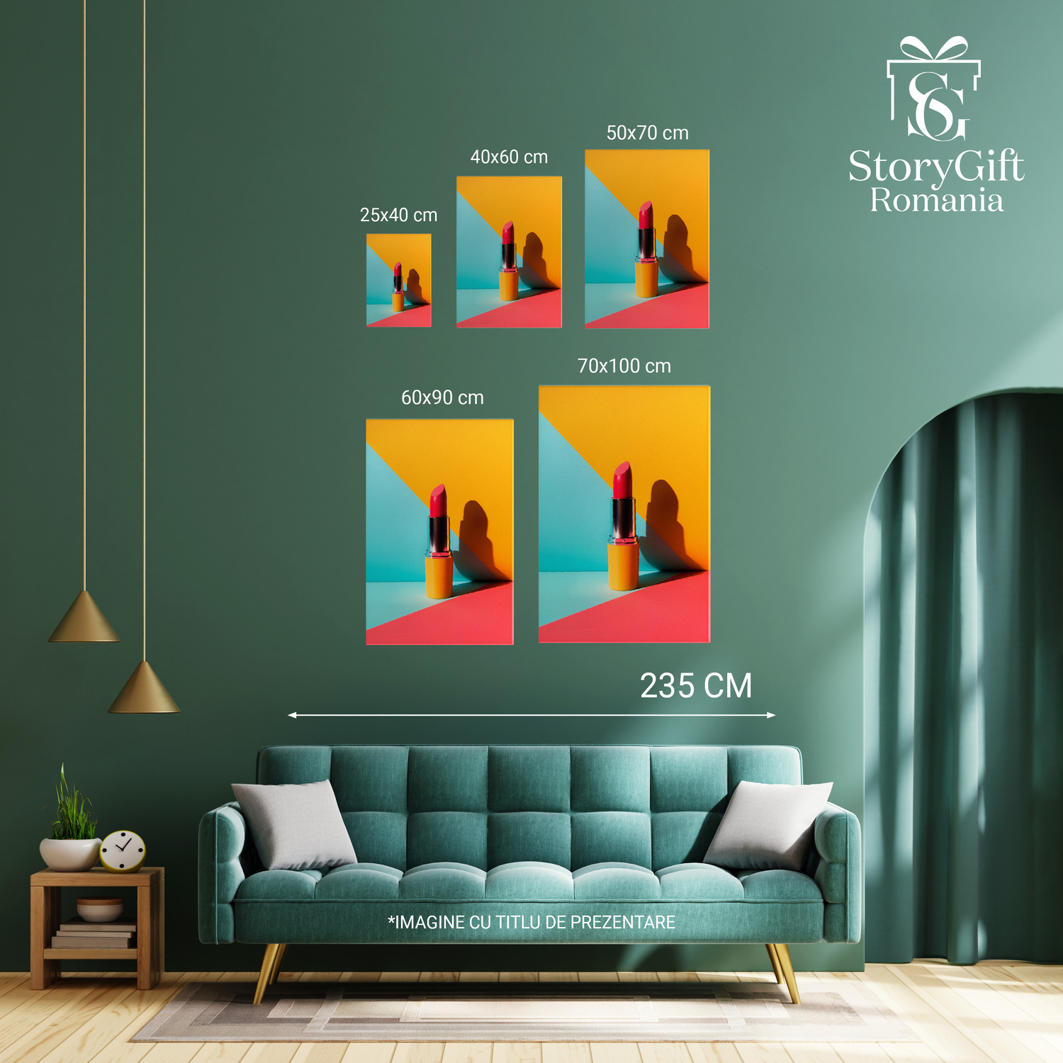 Notă importantă: Precizăm că imaginile de pe site au scop ilustrativ. Detaliile reale ale produsului pot prezenta diferențe minore față de reprezentările digitale, datorită variațiilor de culoare, mărimea tabloului și rezoluția dispozitivelor. Disponibilitatea în diverse dimensiuni ne permite să satisfacem nevoile dvs. specifice; pentru a vă asigura de alegerea potrivită, recomandăm măsurarea atentă a spațiului alocat.