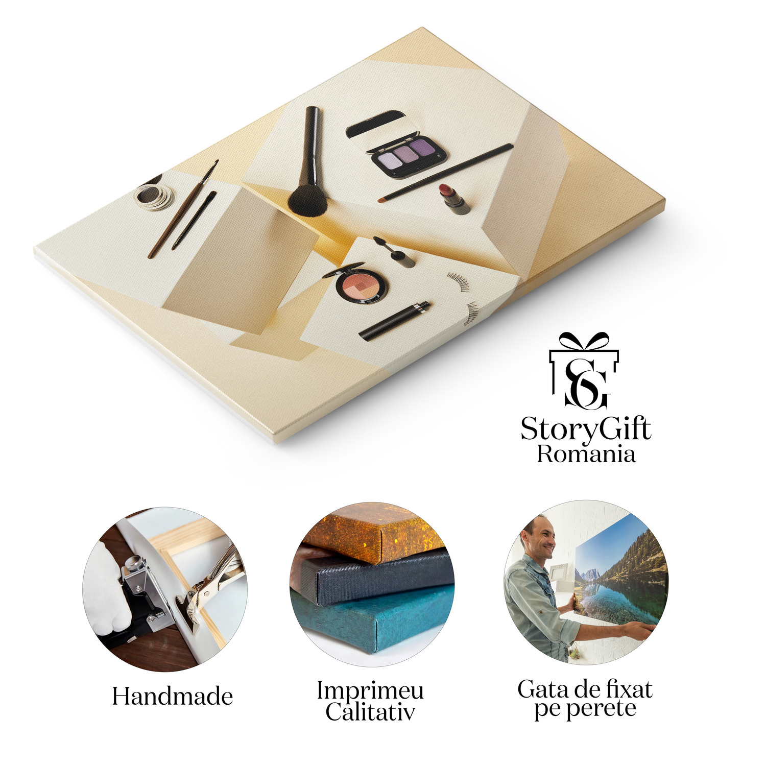 Tablou Canvas - Cosmetice in nuante pale: beauty, cosmetic, eye shadows, fashion - Tablou Canvas Signature de la StoryGift Romania