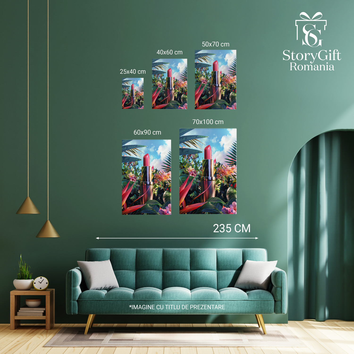 Notă importantă: Precizăm că imaginile de pe site au scop ilustrativ. Detaliile reale ale produsului pot prezenta diferențe minore față de reprezentările digitale, datorită variațiilor de culoare, mărimea tabloului și rezoluția dispozitivelor. Disponibilitatea în diverse dimensiuni ne permite să satisfacem nevoile dvs. specifice; pentru a vă asigura de alegerea potrivită, recomandăm măsurarea atentă a spațiului alocat.