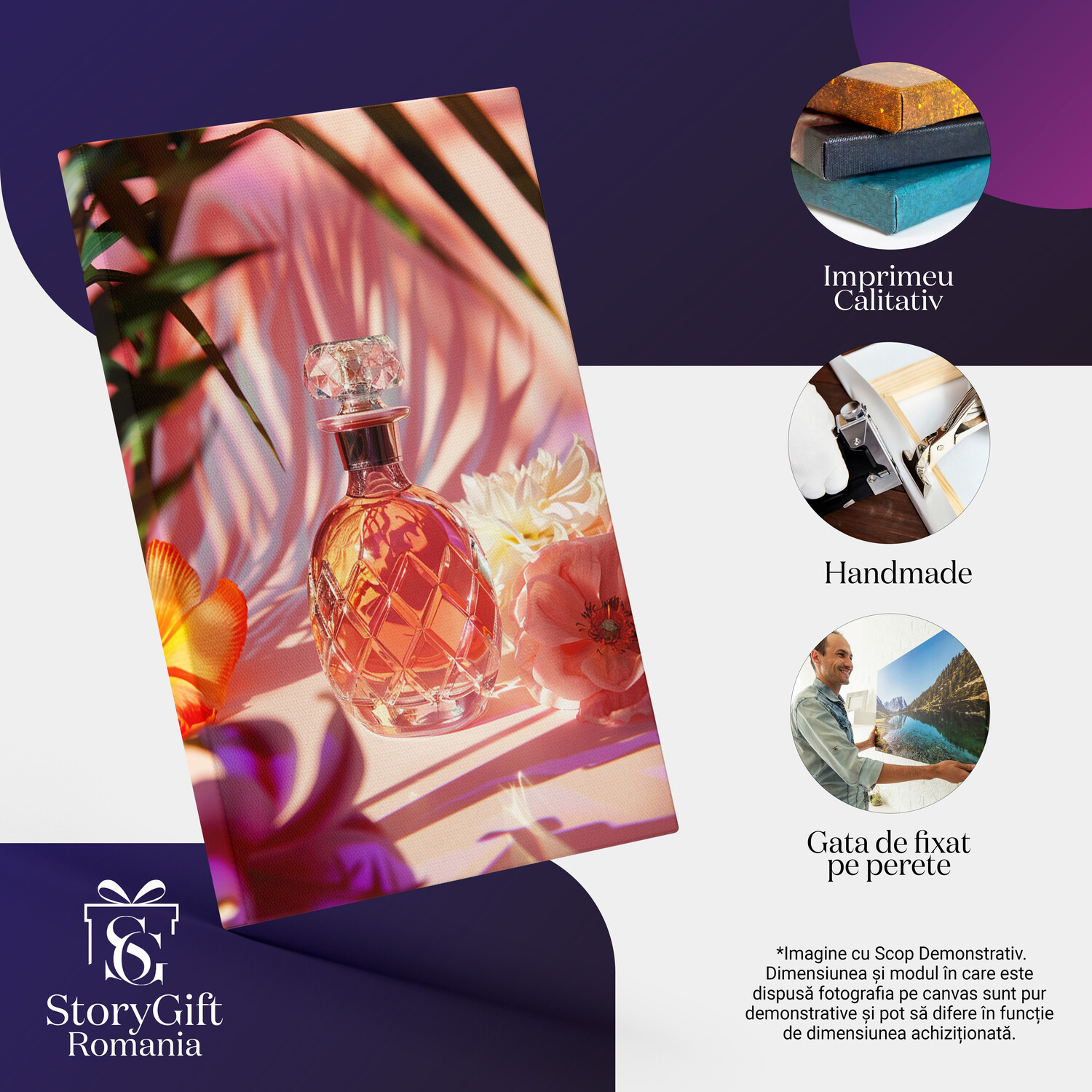 Tablou Canvas Sticluta cu Parfum de Lux cu Esenta Florala Elixirul ce Captiveaza Esenta Naturii , Pictura Digitala - Tablou Canvas Signature de la StoryGift Romania