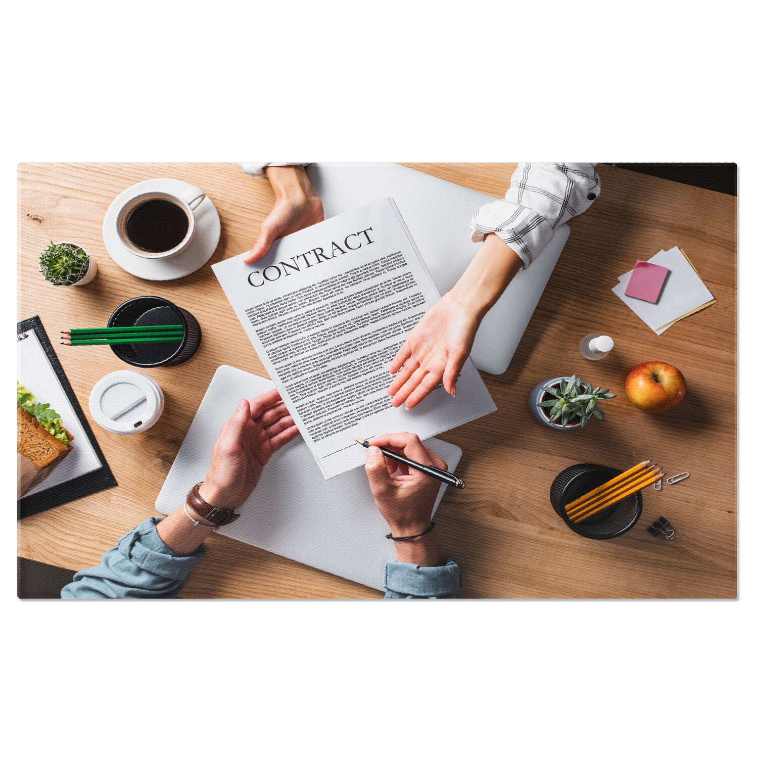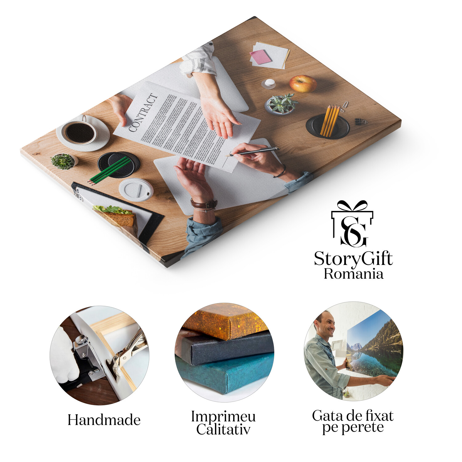 Tablou Canvas - Zi de lucru, om si femeie cu documente si cafea - afaceri, birou, colaborare - Tablou Canvas Signature de la StoryGift Romania