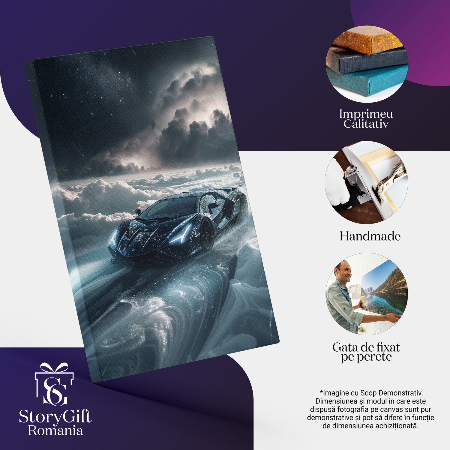 Tablou Canvas: Aproape de Astre Automobilul Sport in Norii Noptii Ploaie de Stele Stralucitoare Pictura Digitala - Tablou Canvas Signature de la StoryGift Romania