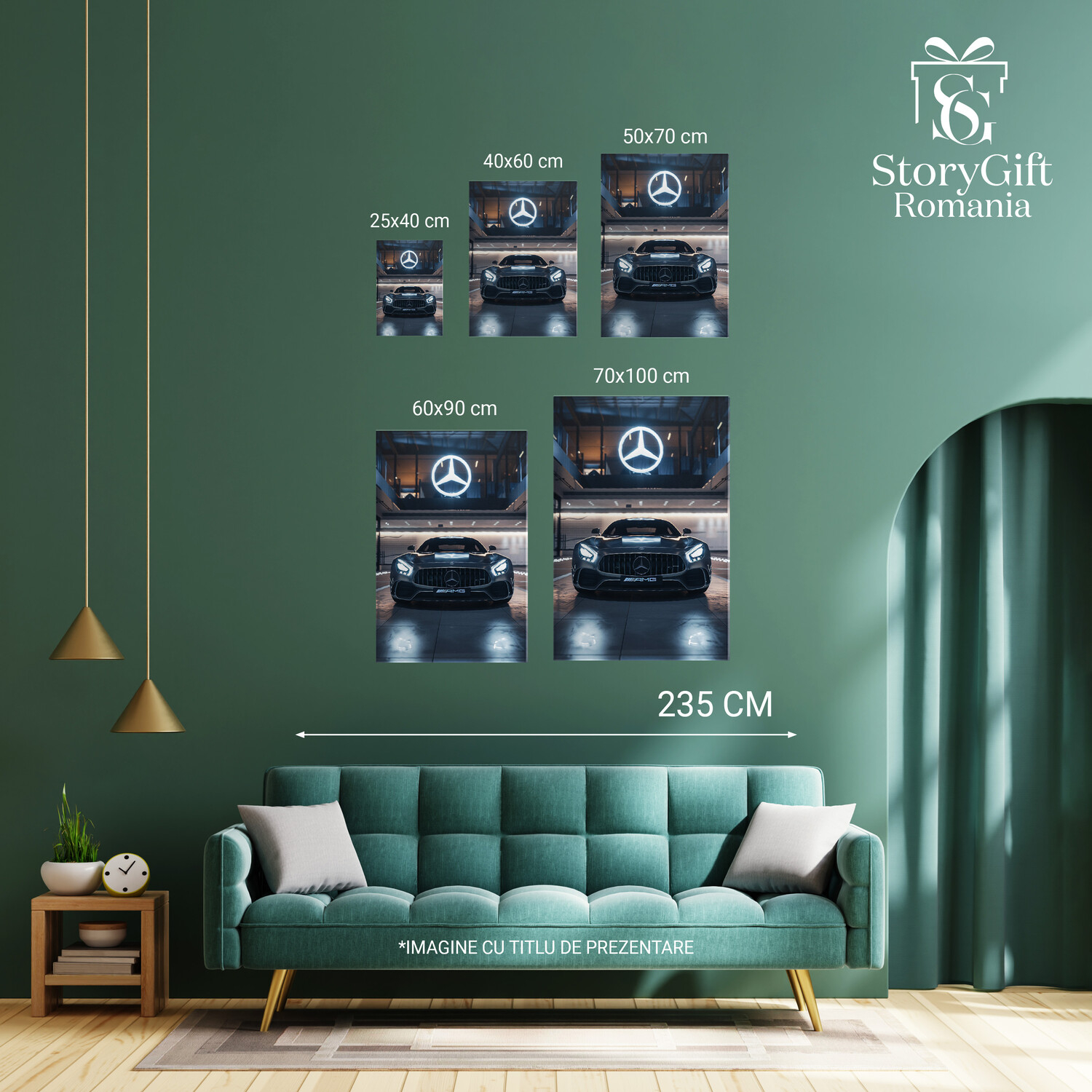 Tablou Canvas Expozitie Auto de Masini Marca Mercedes, o Masina Frumoasa de Culoare Gri Mercedes AMG , Pictura Digitala - Tablou Canvas Signature de la StoryGift Romania