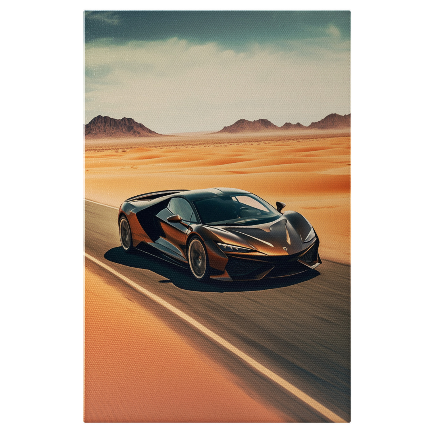 Tablou Canvas: Lamborghini care accelereaza pe o sosea din desert - de lux Pictura Digitala 40x25CM