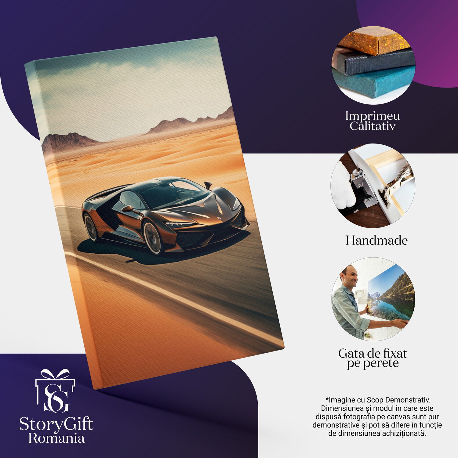 Notă importantă: Precizăm că imaginile de pe site au scop ilustrativ. Detaliile reale ale produsului pot prezenta diferențe minore față de reprezentările digitale, datorită variațiilor de culoare, mărimea tabloului și rezoluția dispozitivelor. Disponibilitatea în diverse dimensiuni ne permite să satisfacem nevoile dvs. specifice; pentru a vă asigura de alegerea potrivită, recomandăm măsurarea atentă a spațiului alocat.