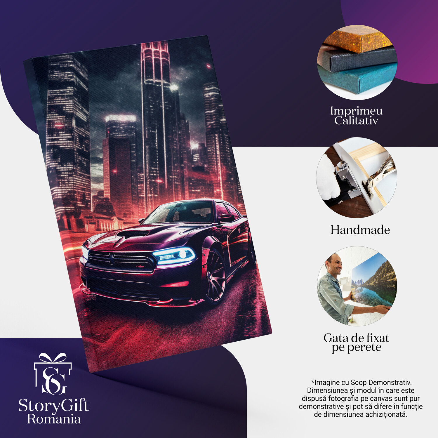Tablou Canvas: Masina intr-un oras aglomerat - neon noapte Pictura Digitala - Tablou Canvas Signature de la StoryGift Romania