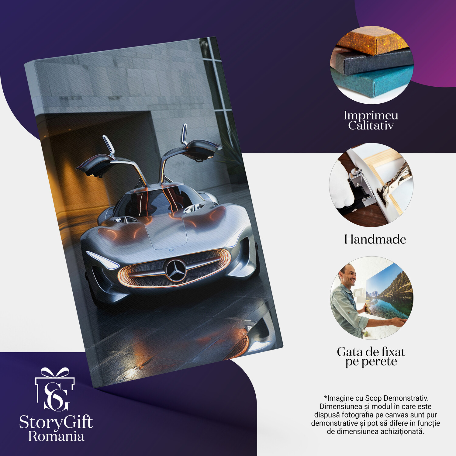 Tablou Canvas Masina Mercedes Benz AMG Vision Gran Turismo cu Usile care se Deschid Vertical de Culoare Gri , Pictura Digitala - Tablou Canvas Signature de la StoryGift Romania
