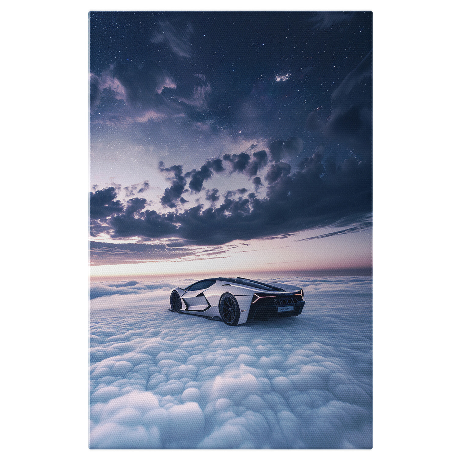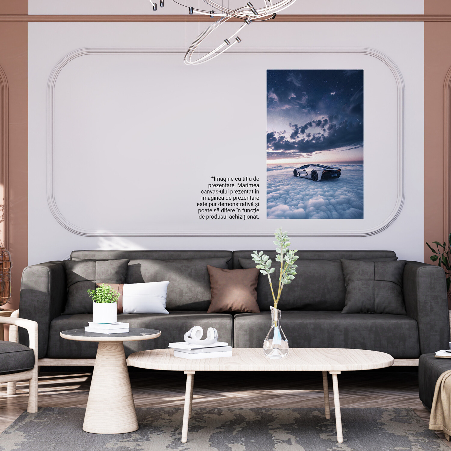 Tablou Canvas: Printre Straturi de Nori Plimbare cu Masina Noua Intuneric si Lumina Stelara Pictura Digitala 40x25CM