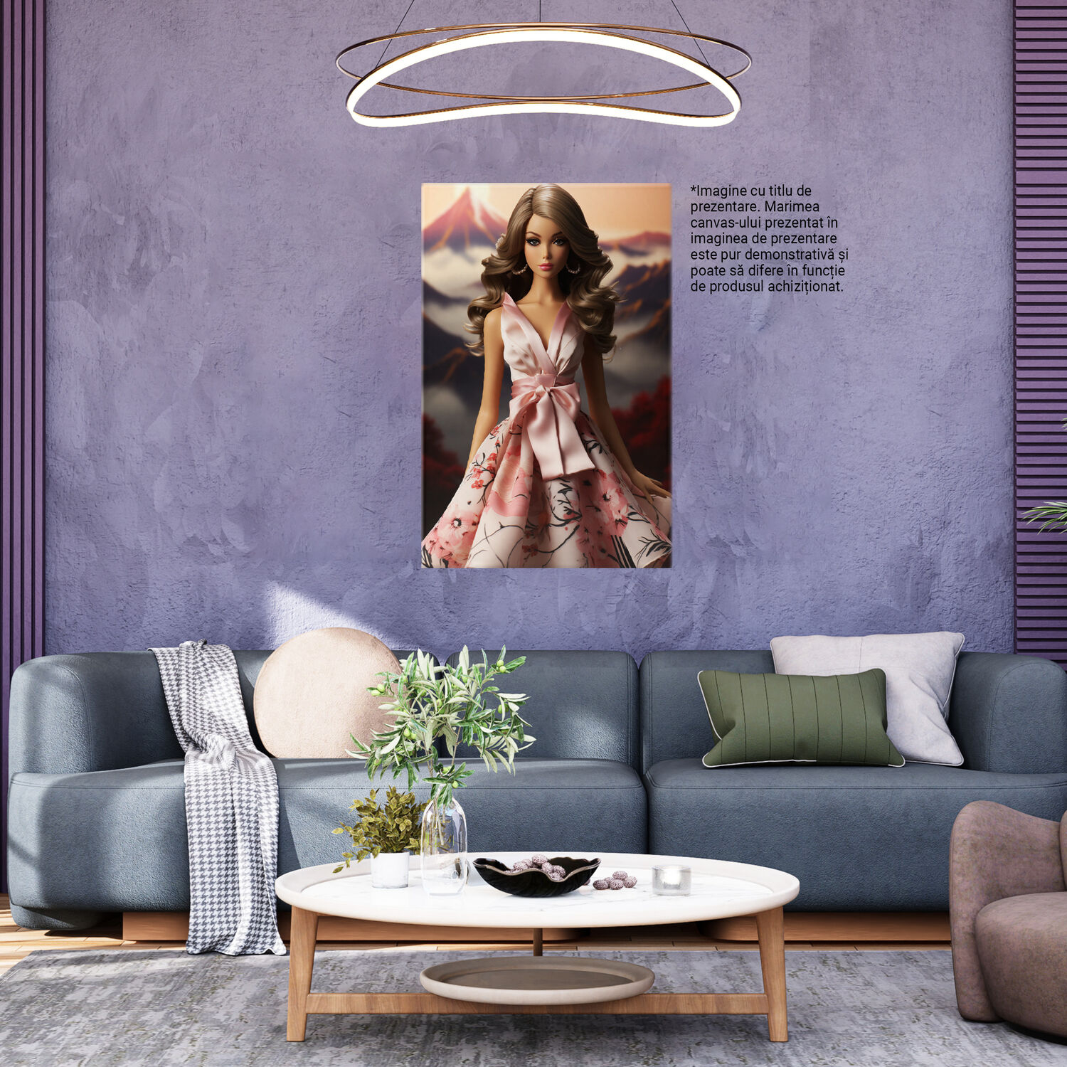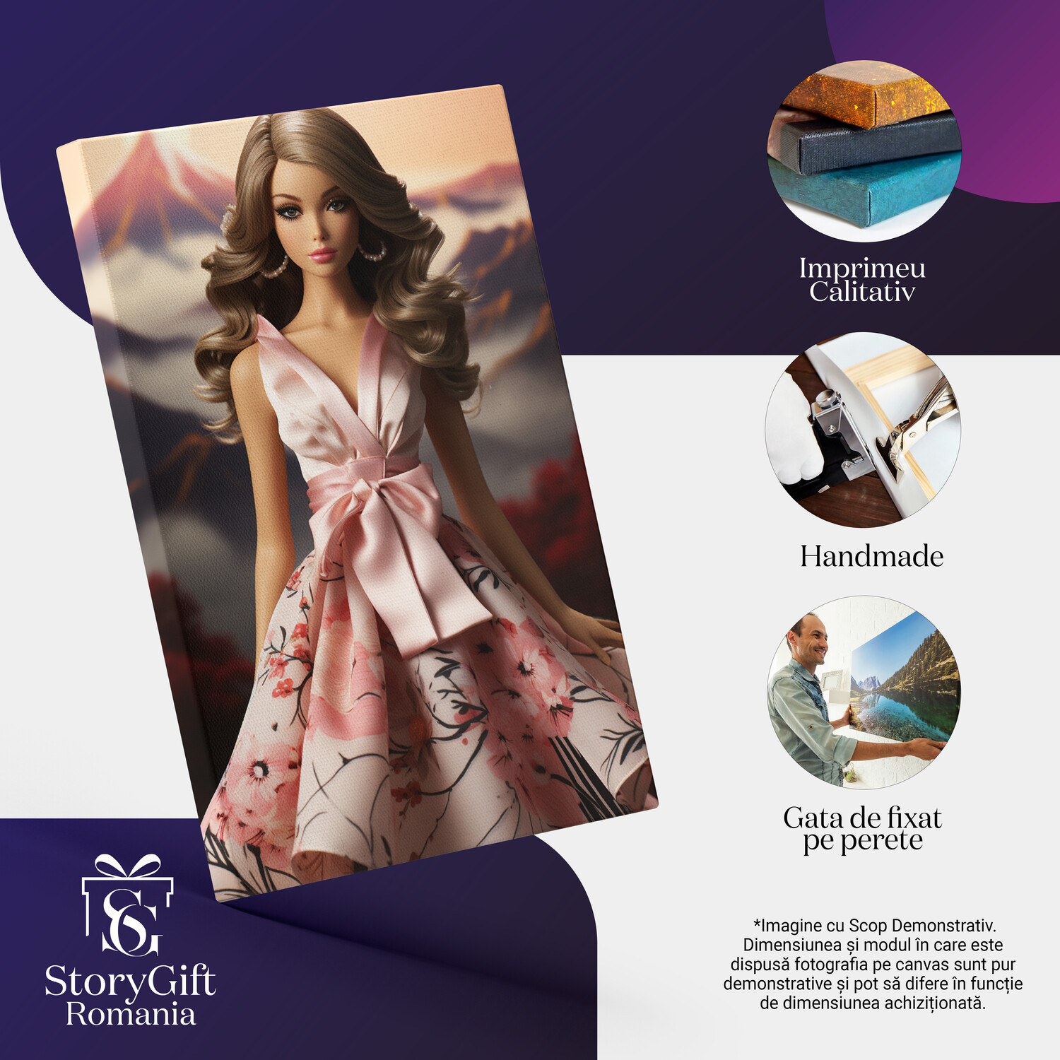 Tablou Canvas: Barbie in rochie florala Frumusete, Blond, Lucrari de arta, Costum, Croiala costum, Papusa, infrumuseta Pictura Digitala - Tablou Canvas Signature de la StoryGift Romania