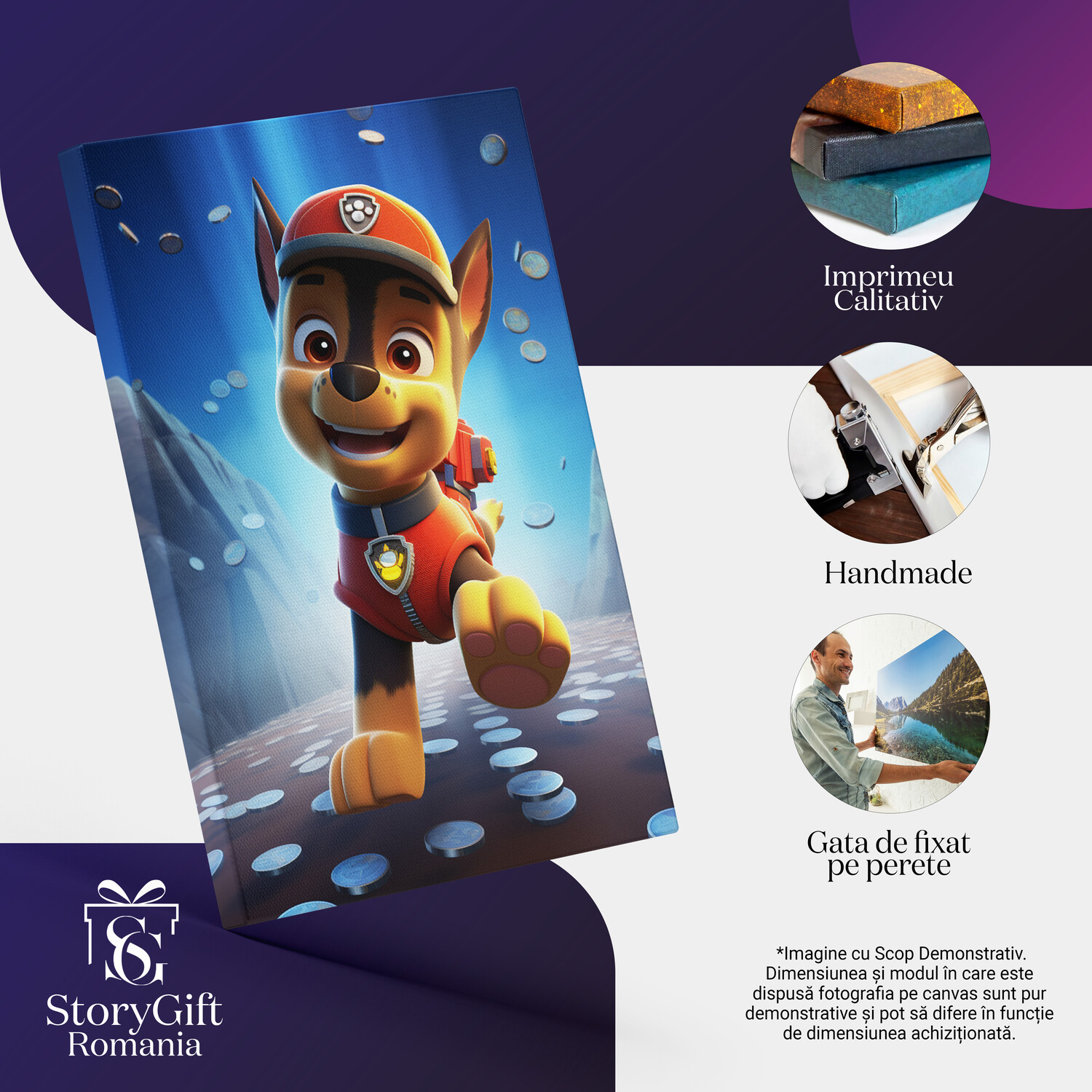 Tablou Canvas: Catel Patrula Secreta cu Costum Rosu Alergand-Fotografie Animata si Desene Pentru Copii Pictura Digitala - Tablou Canvas Signature de la StoryGift Romania
