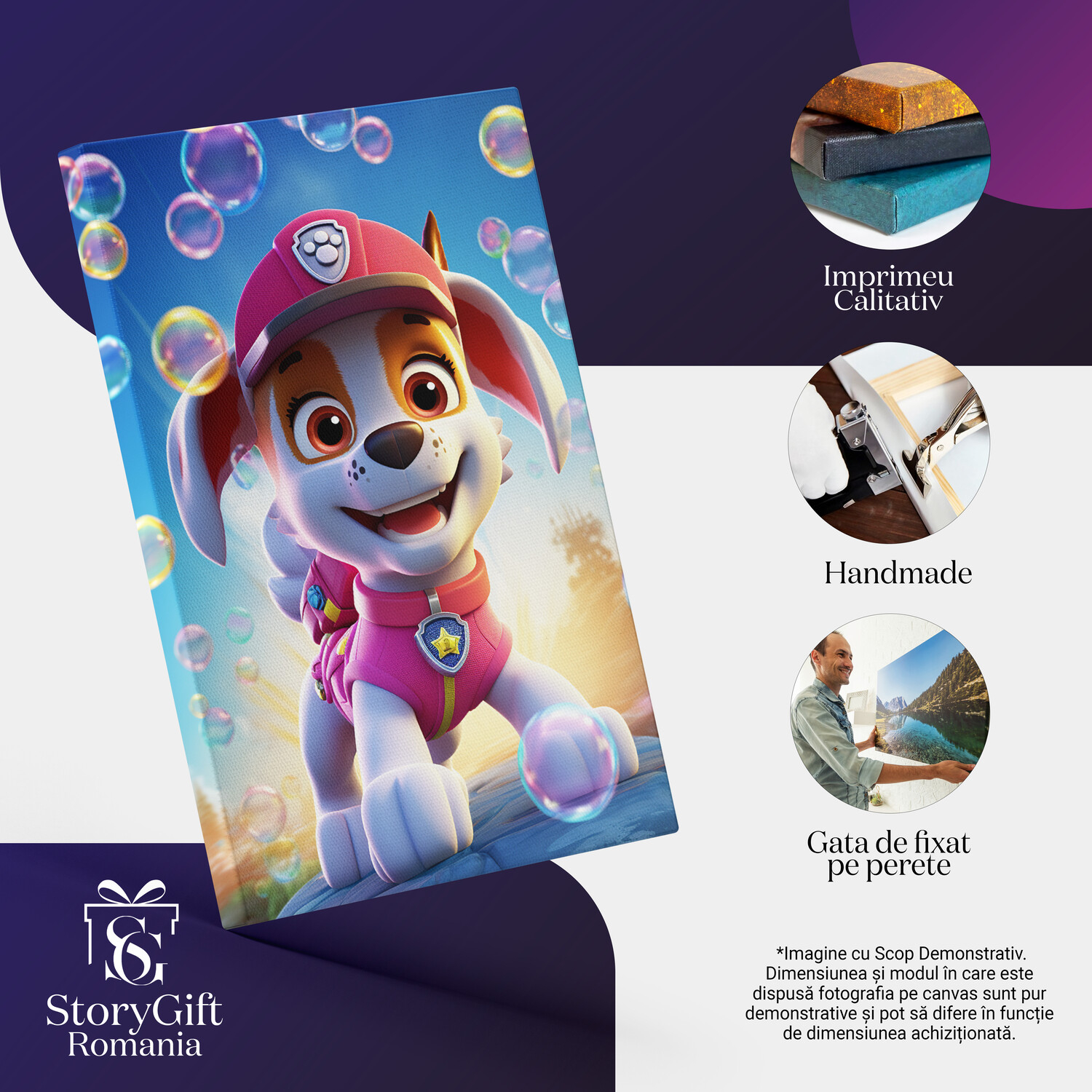 Tablou Canvas: Catel Personaj Patrula Secreta cu Costum Roz si Baloane de Sapun-Fotografie Animata Pictura Digitala - Tablou Canvas Signature de la StoryGift Romania