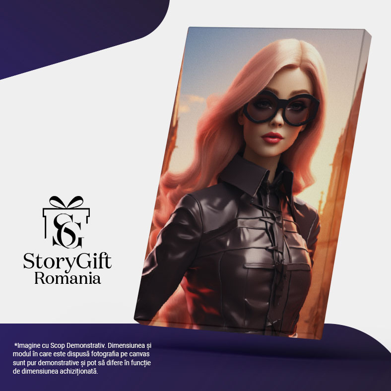 Tablou Canvas: Barbie spioana Blond, Lucrari de arta, Nor, , Croiala costum, Desen, Ochelari, Moda, Design vestimentar Pictura Digitala 40x25CM