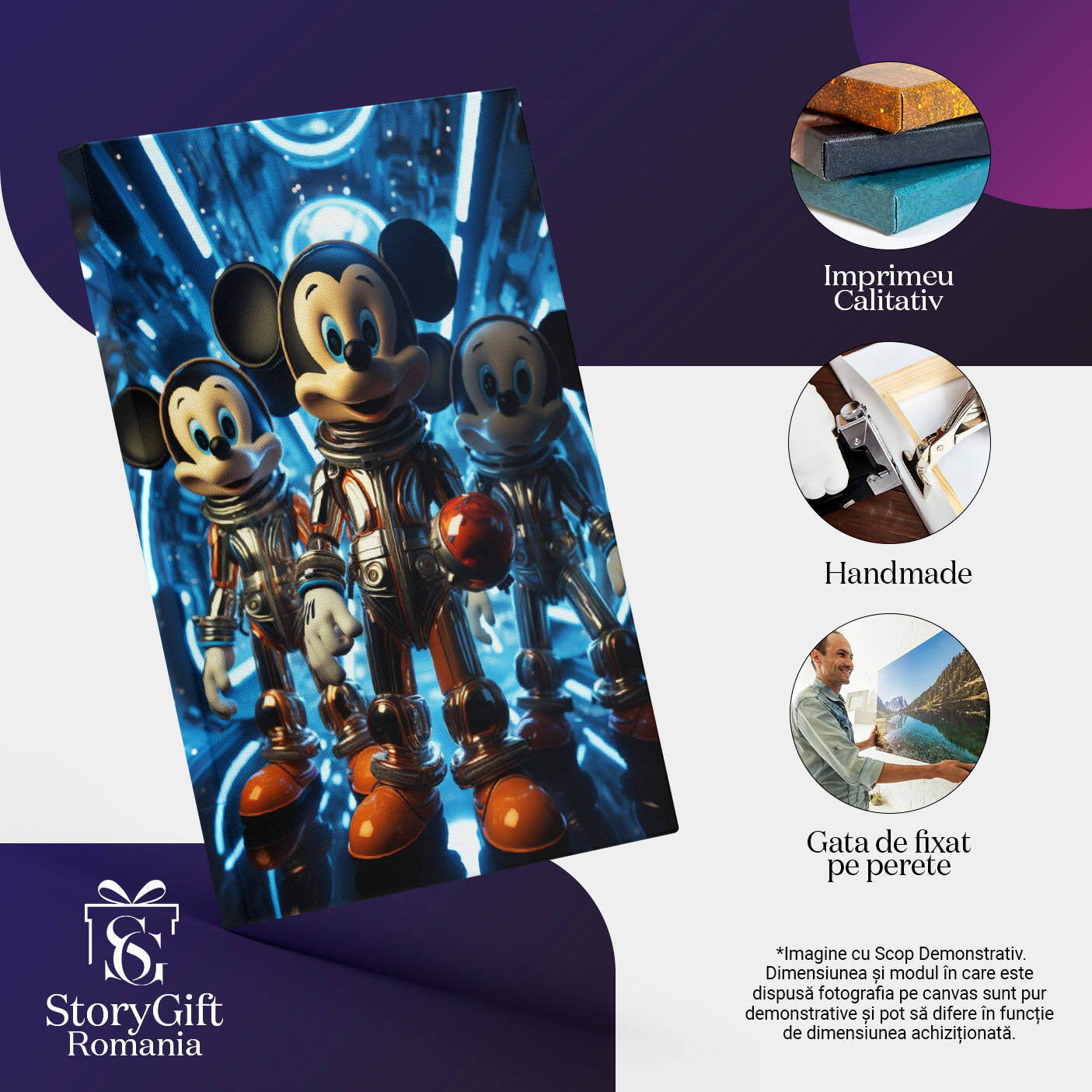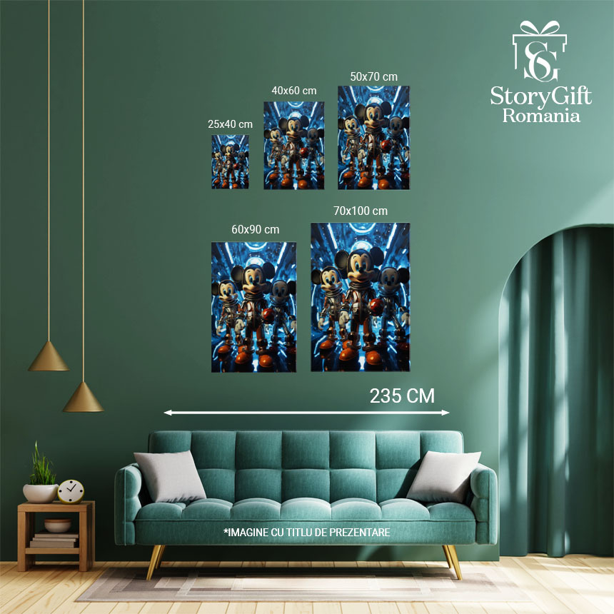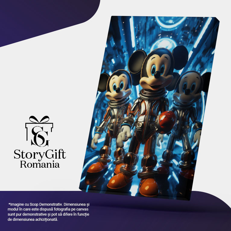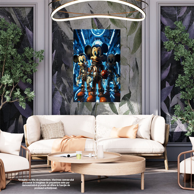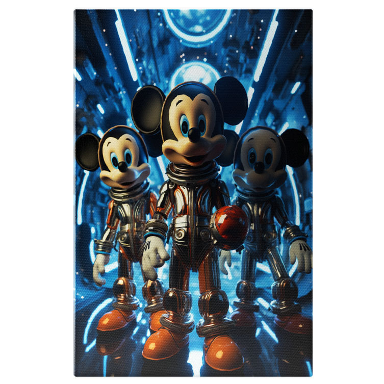 Tablou Canvas: Imagine cu Trei Cosmonauti Mickey Mouse pe o Nava -Fotografie Artistica si Animatie Pictura Digitala 40x25CM