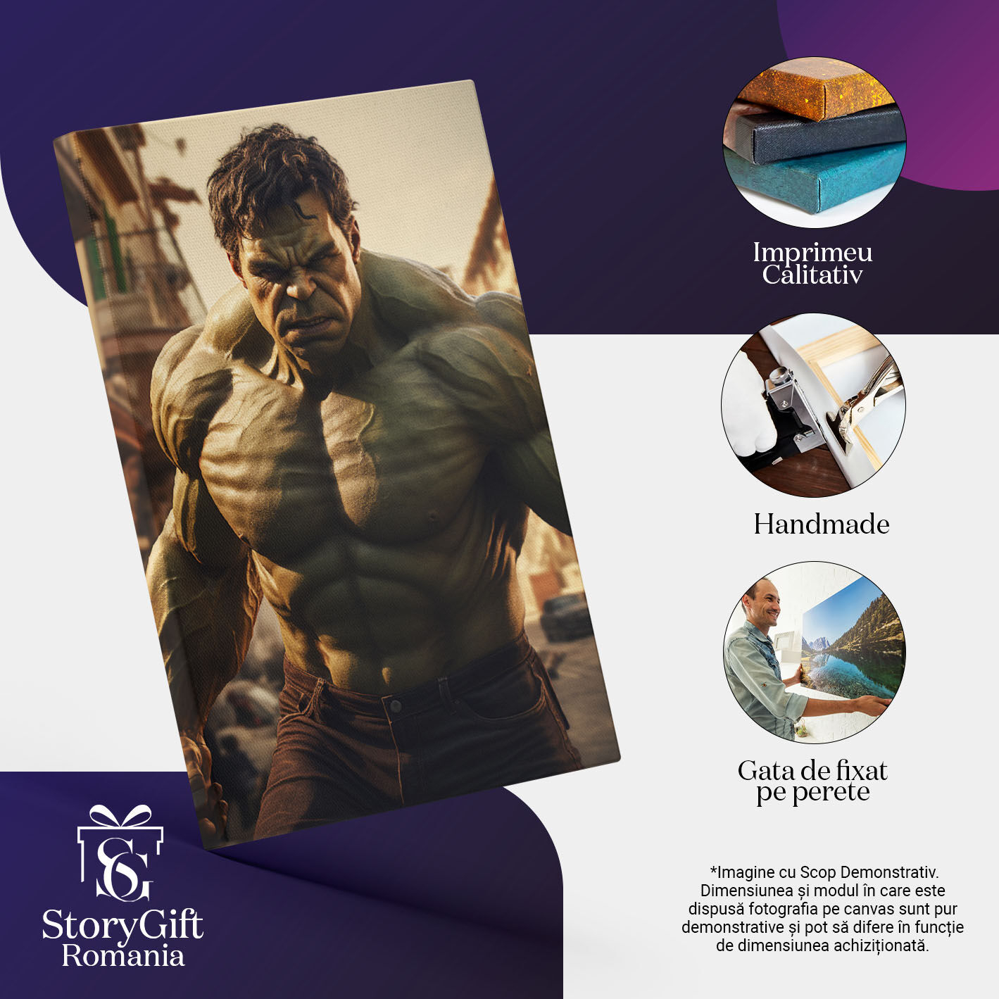 Tablou Canvas: Personaj din Benzile Desenate Marvel , Hulk cu Blugi Negrii si Brate Mari cu Privire Nervoasa Pictura Digitala 40x25CM