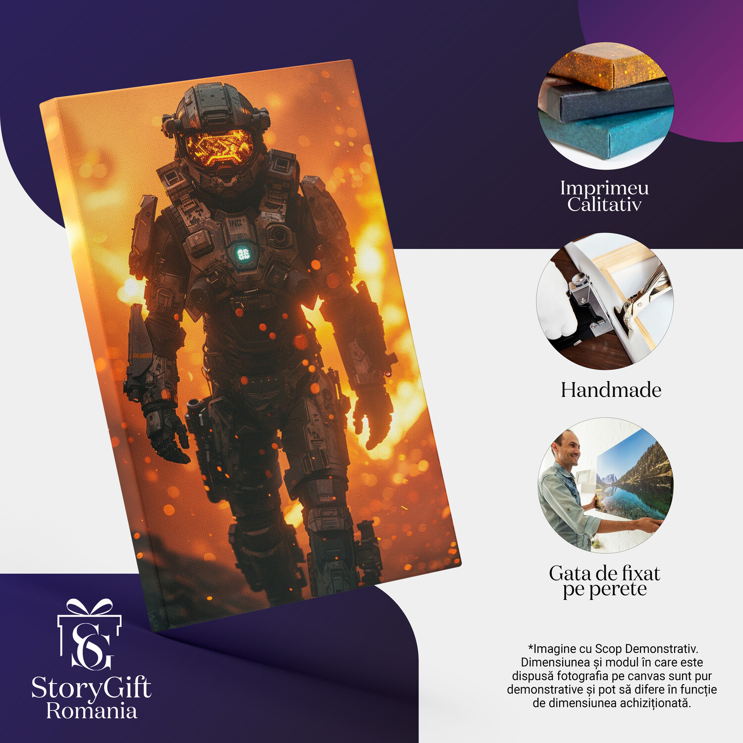 Tablou Canvas Incendiu pe Marte Astronautul ce se Indreapta spre Baza Reflexia Flacarilor , Pictura Digitala - Tablou Canvas Signature de la StoryGift Romania