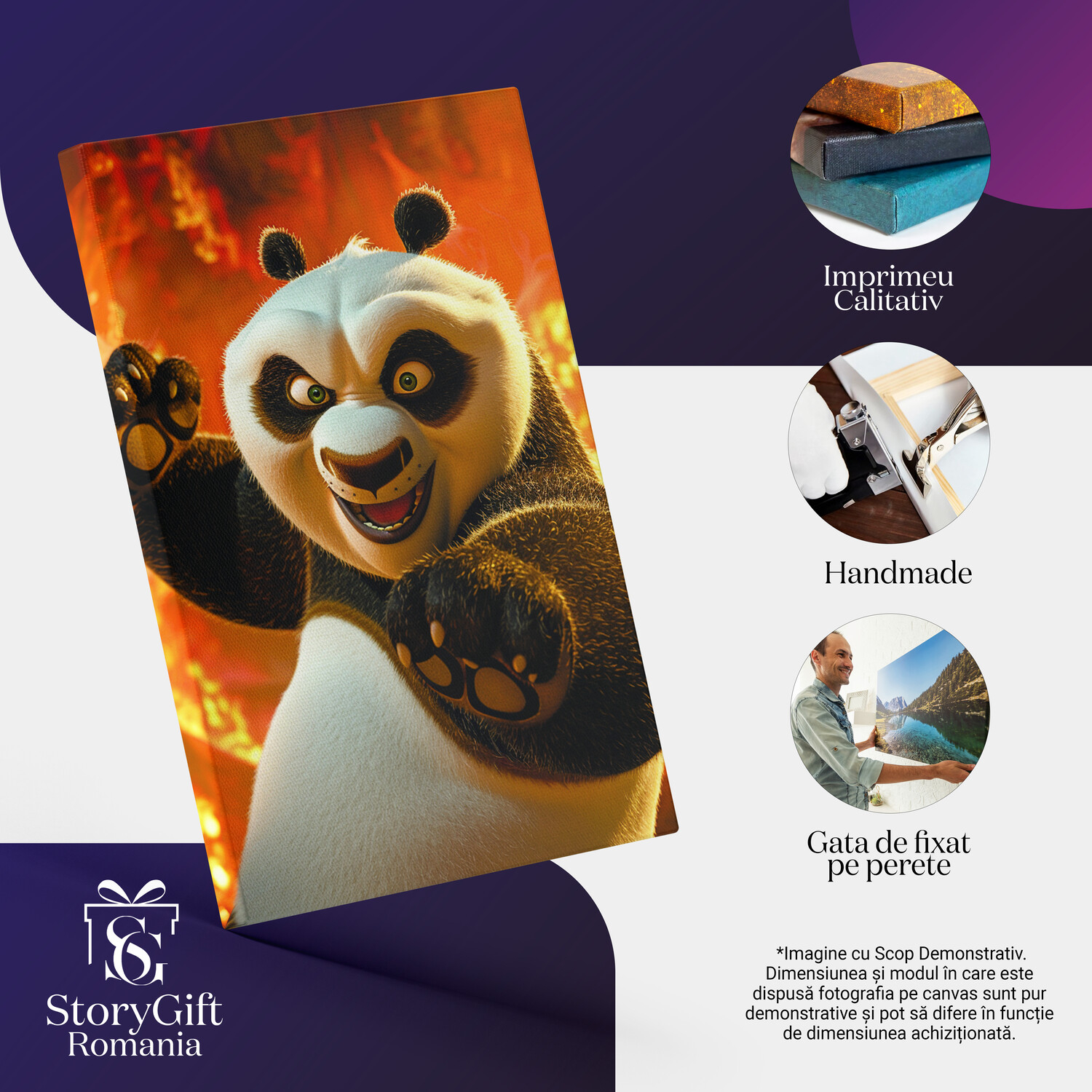 Tablou Canvas: Kung Fu Panda Urs cu Ochii Verzi si Flari in Spatele lui Practica Arte Martiale Pictura Digitala - Tablou Canvas Signature de la StoryGift Romania