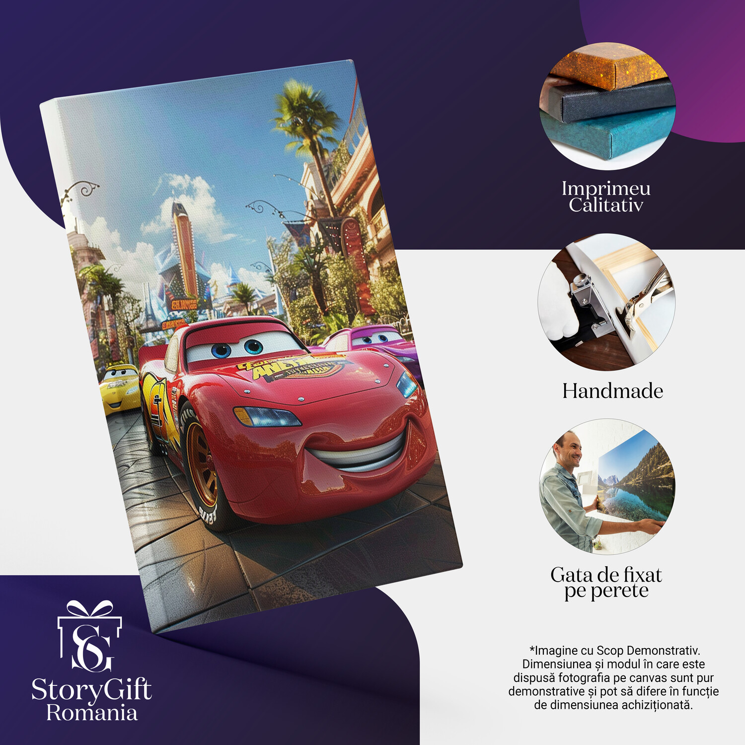 Tablou Canvas: Masina Chipesa Fulger McQueen cu Ochii Albastri si Zambetul Alb, Masina Rosie Pictura Digitala - Tablou Canvas Signature de la StoryGift Romania