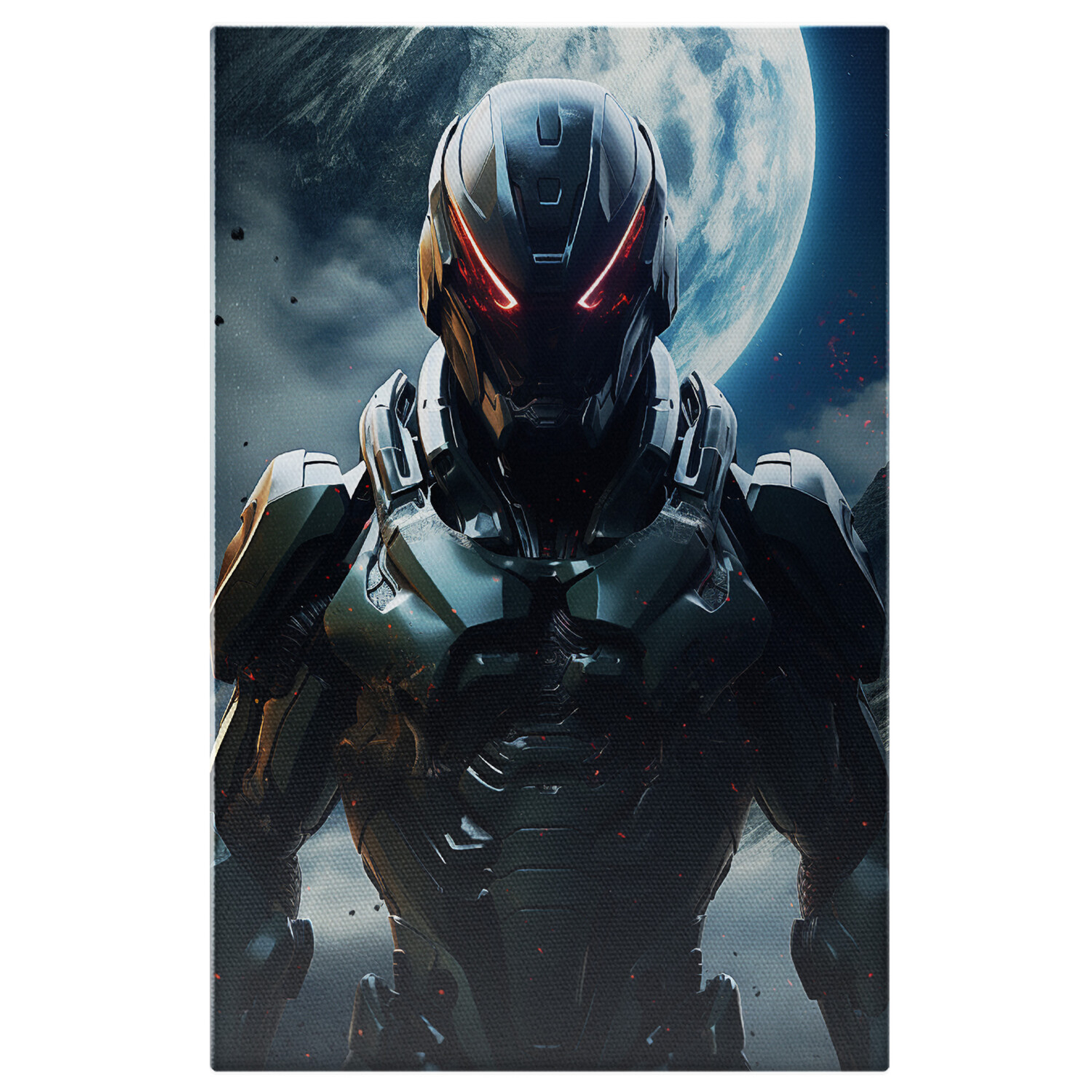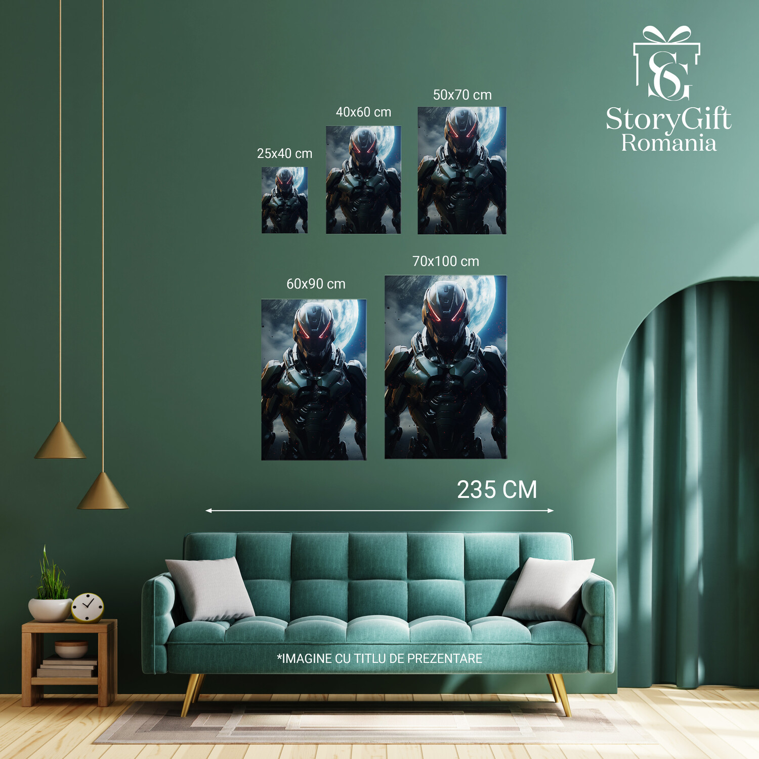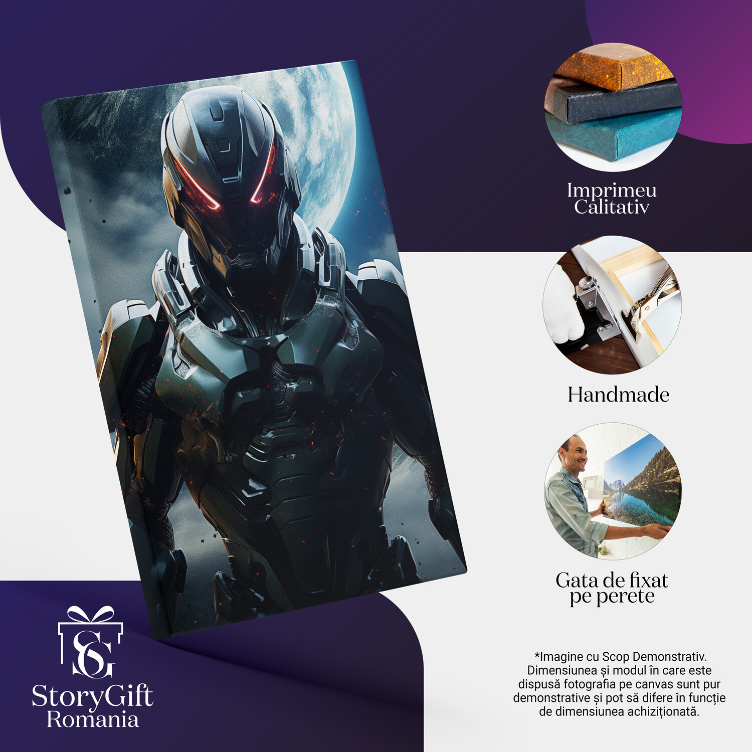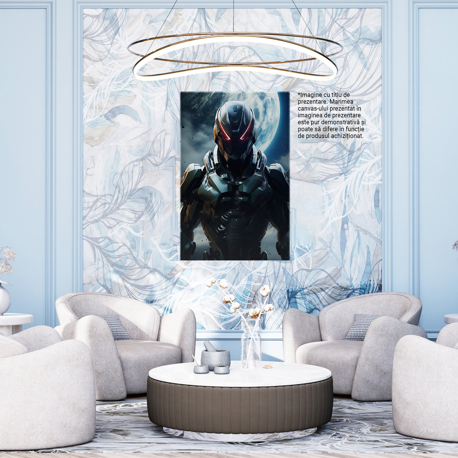 Tablou Canvas: Personaj Misterios Cyborg in Paza sub Lumina Lunii - Fotografie Futurista Pictura Digitala - Tablou Canvas Signature de la StoryGift Romania
