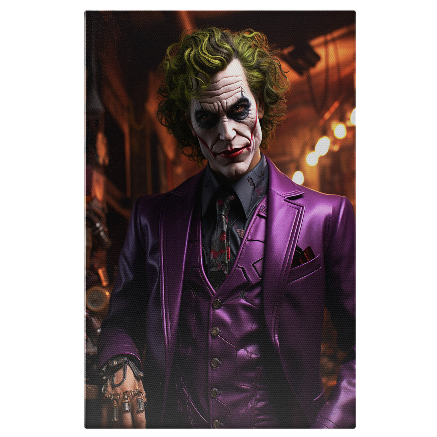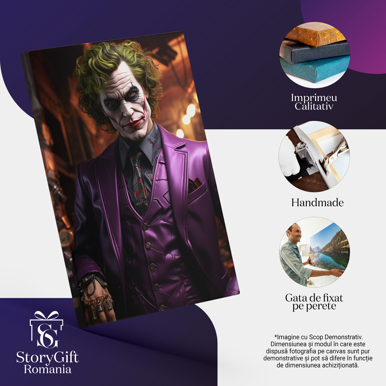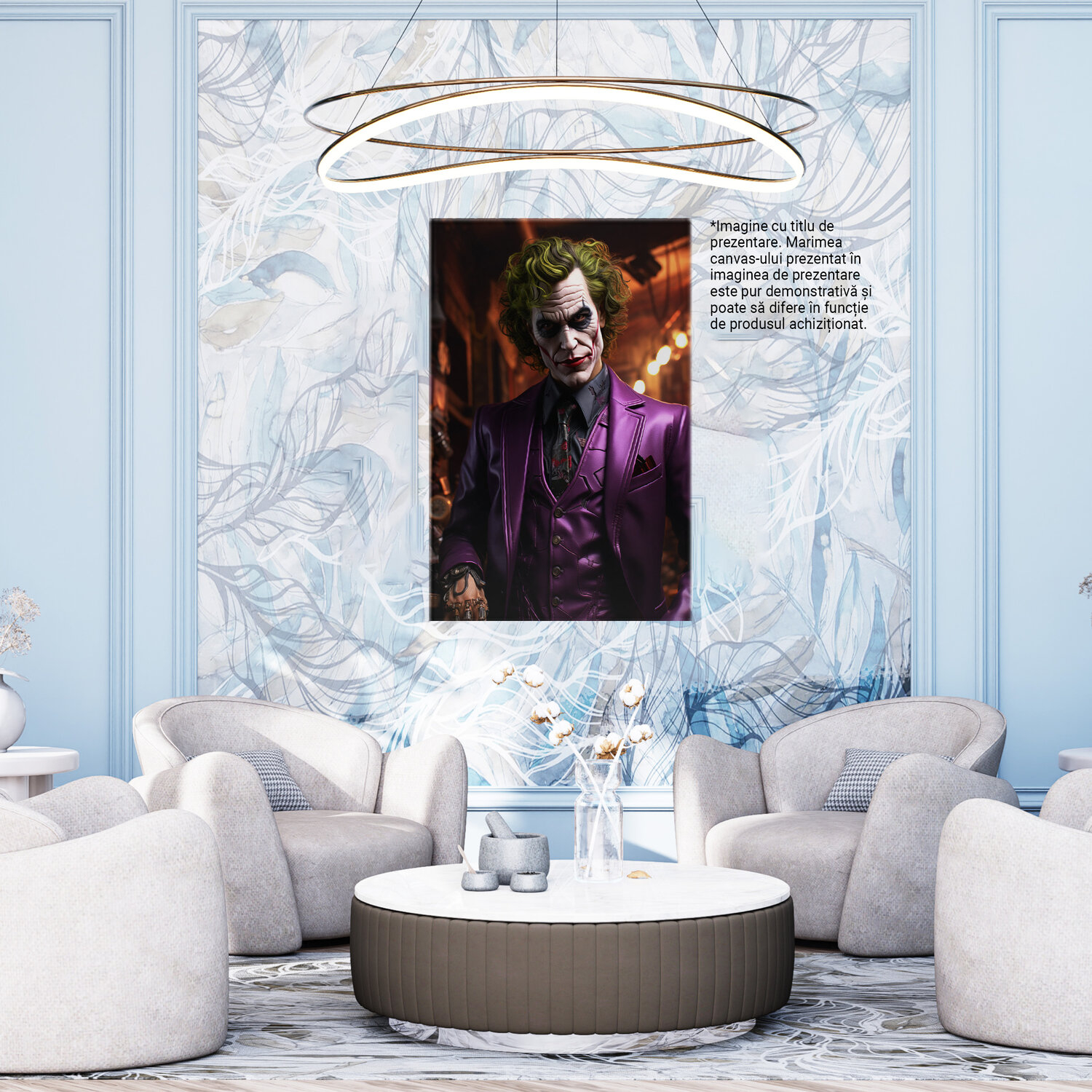 Tablou Canvas: Portret Joker in costum mov de piele privire profunda Pictura Digitala - Tablou Canvas Signature de la StoryGift Romania