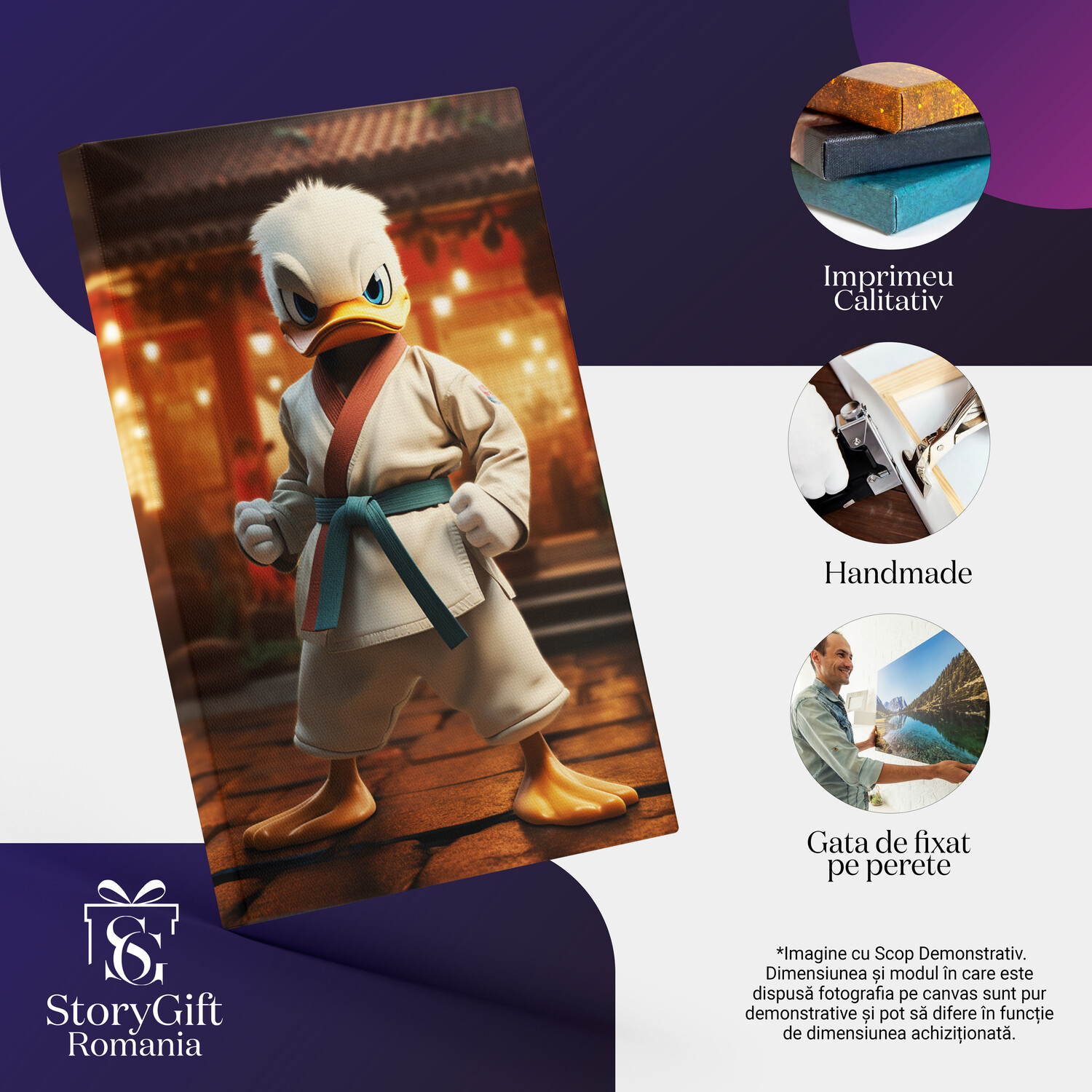 Tablou Canvas: Ratusca Pasionata de Karate, Donald Duck Japonez cu Privire Furioasa Kung Fu Pictura Digitala - Tablou Canvas Signature de la StoryGift Romania