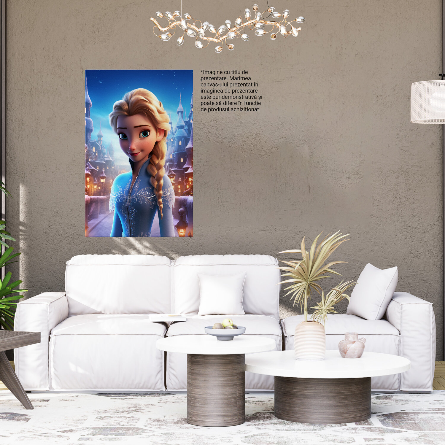 Tablou Canvas: Regatul de Gheata Printesa Disney Elsa in Rochie cu Par Impletit si Ochii Sclipitori Pictura Digitala - Tablou Canvas Signature de la StoryGift Romania