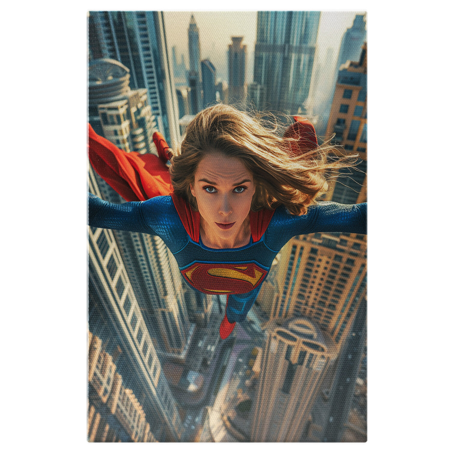 Tablou Canvas: Superwoman in Actiune - Zbor, Inaltime Pictura Digitala - Tablou Canvas Signature de la StoryGift Romania