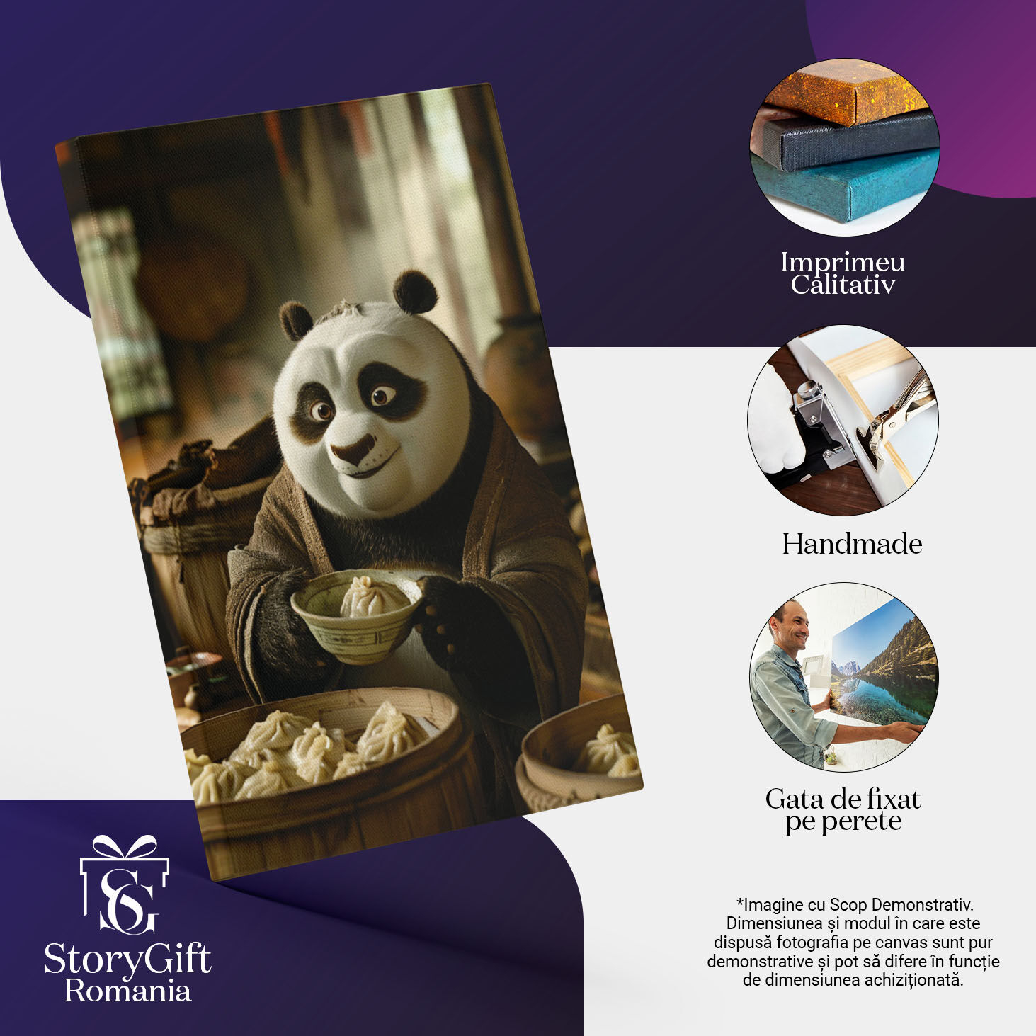 Tablou Canvas: Bucatarul Chinezesc Panda care Pregateste Baozi pentru Familia lui Minunata Pictura Digitala 40x25CM