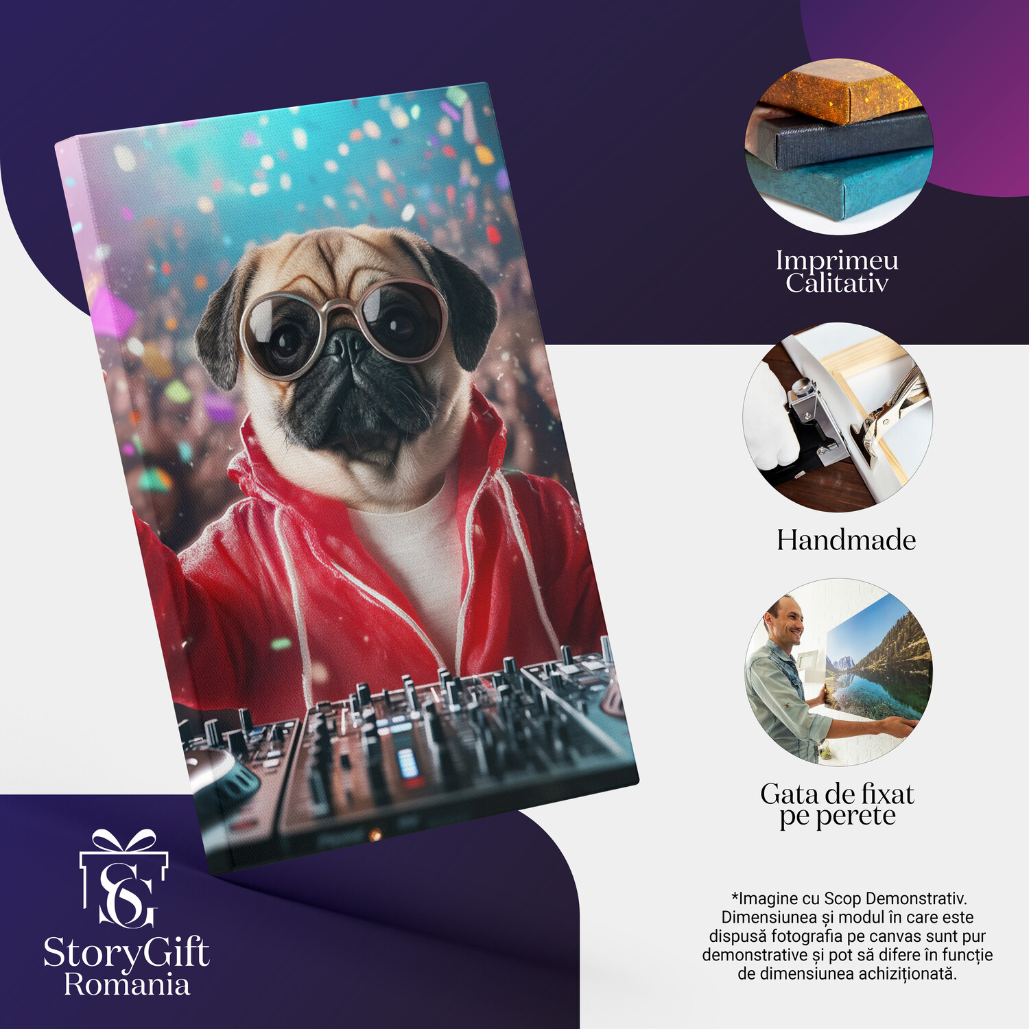 Tablou Canvas Personalizat Dj La Petrecere, Tinuta Stil Hip-Hop Hanorac Rosu Cu Gluca, Muzica, Artist 40x25CM