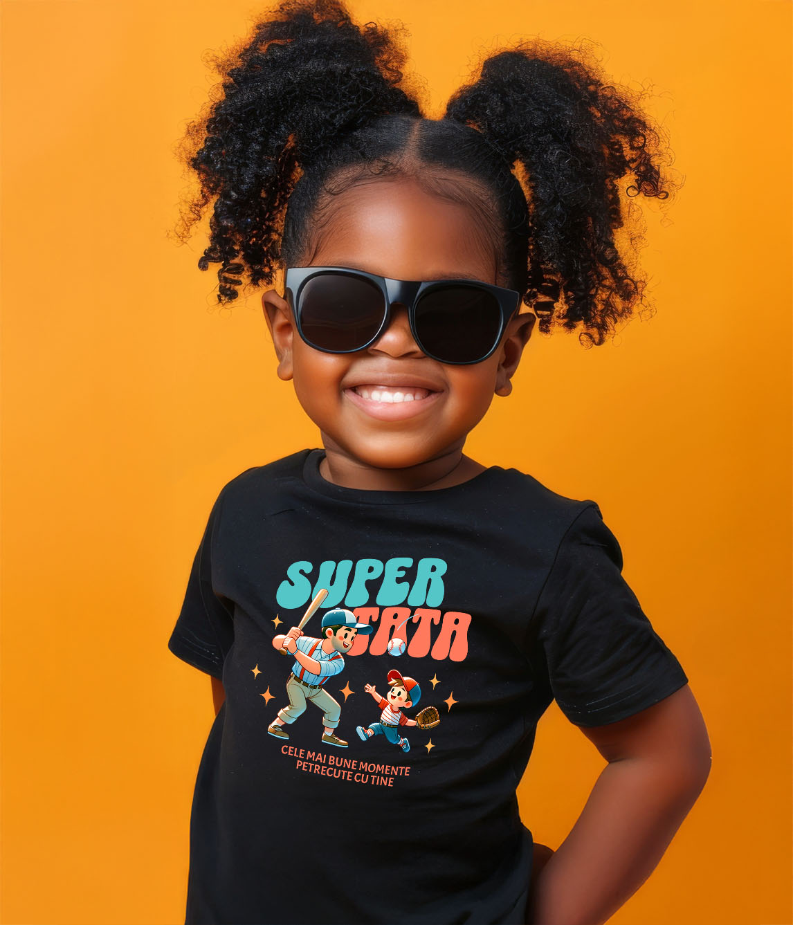 Tricou Copii cu Barbat Si Copil Jucand Baseball Sport, Copii, Familie cu imprimeu pe Fata, 100% Bumbac, Negru, 8 Ani