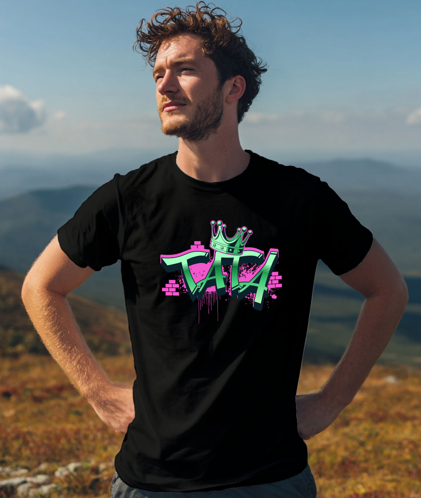 Tricou Barbati cu Coroana Regala Stil graffiti Stradal Familie Barbat Copii, Unchii cu imprimeu pe Fata, 100% Bumbac, Negru, L