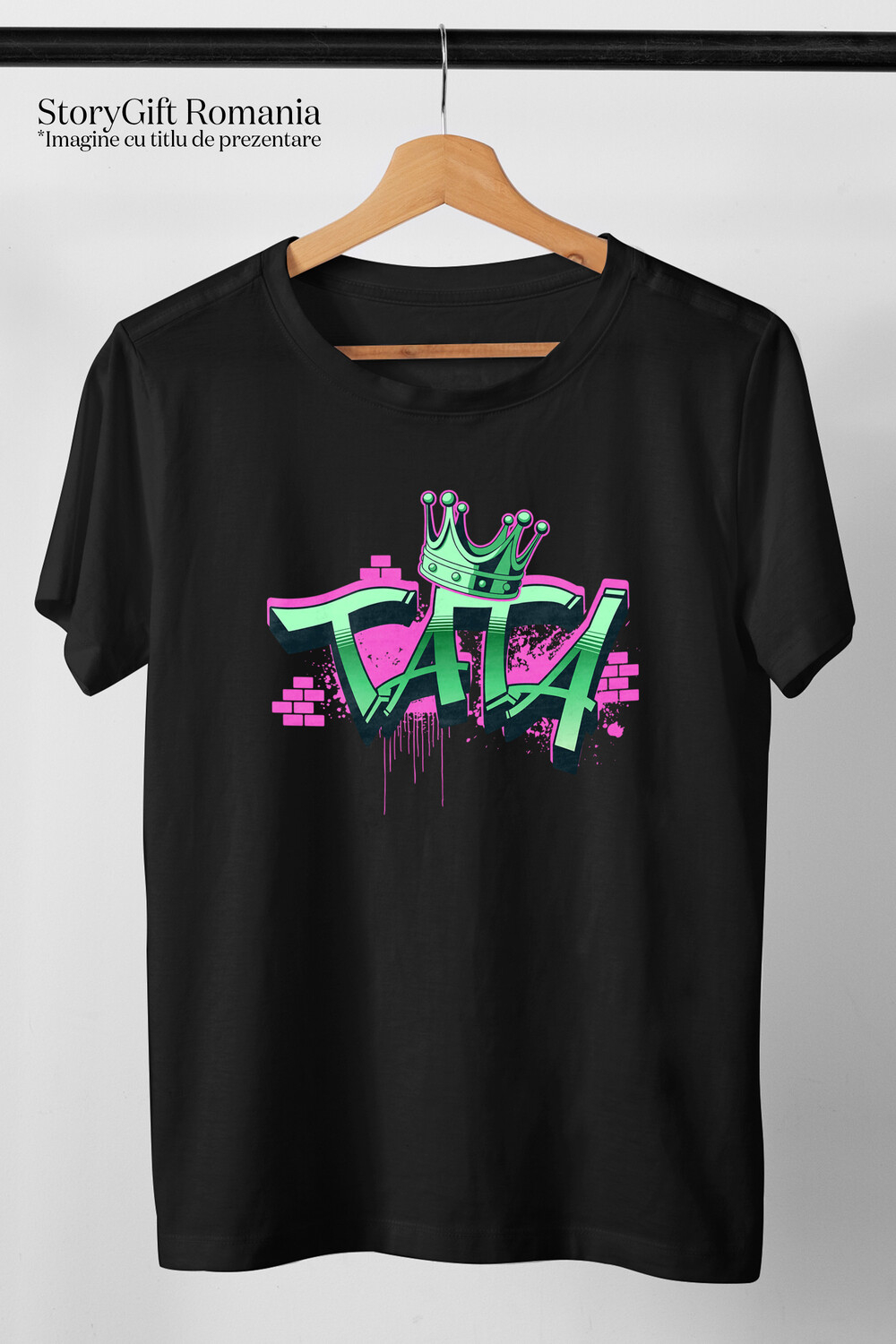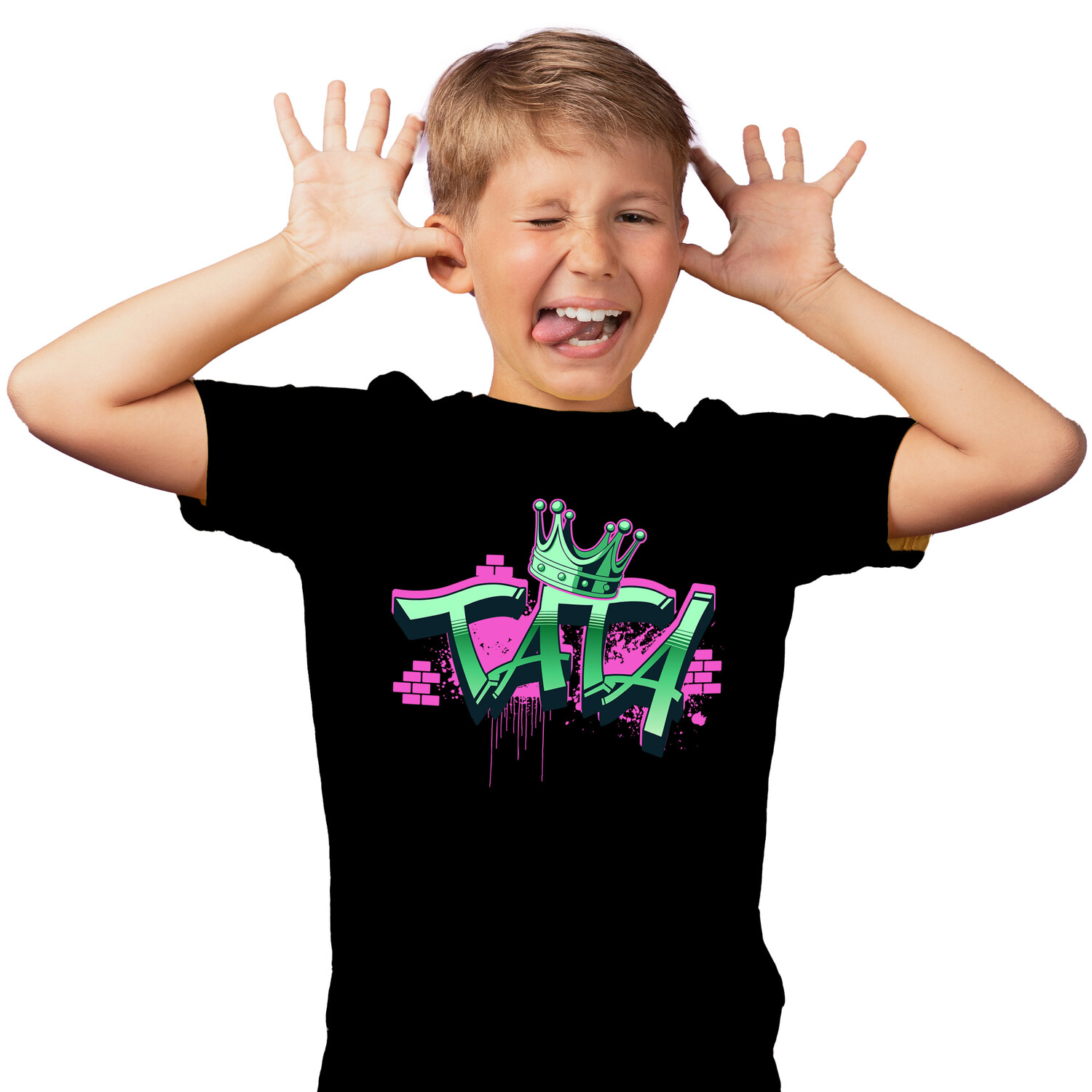 Tricou Copii cu Coroana Regala Stil graffiti Stradal Familie Barbat Copii, Unchii cu imprimeu pe Fata, 100% Bumbac, Negru, 12 Ani