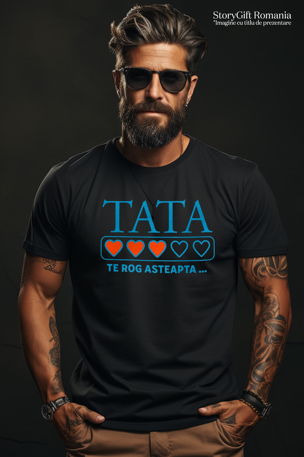 Tricou Barbati cu Inimi Pline Culoare, tata Puternica, Sora, Matusa, Familie, iubire, cu imprimeu pe Fata, 100% Bumbac, Negru, L