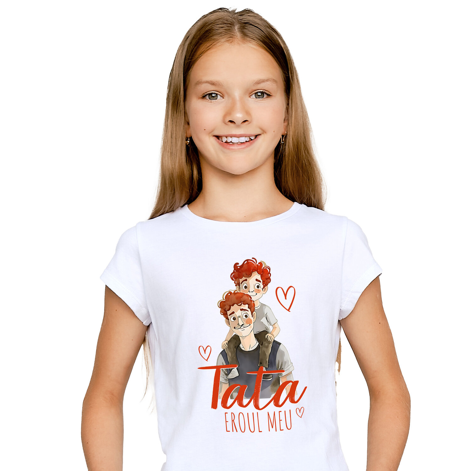 Tricou Copii cu Tata Si Copil Pe Umeri Familie, Copilarie, Baiat, Iubire, Dragoste cu imprimeu pe Fata, 100% Bumbac, Alb, 12 Ani