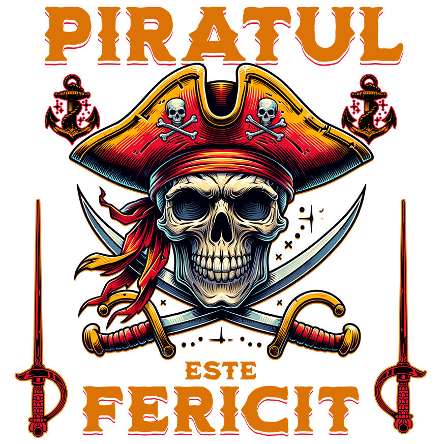 Sticker Personalizat cu Portret Craniu Uman Pirat Cu Palarie Si sabii, Desene Animate Piratii Din Caraibe, Filme cu Margini Albe, PVC Vinyl 10 cm