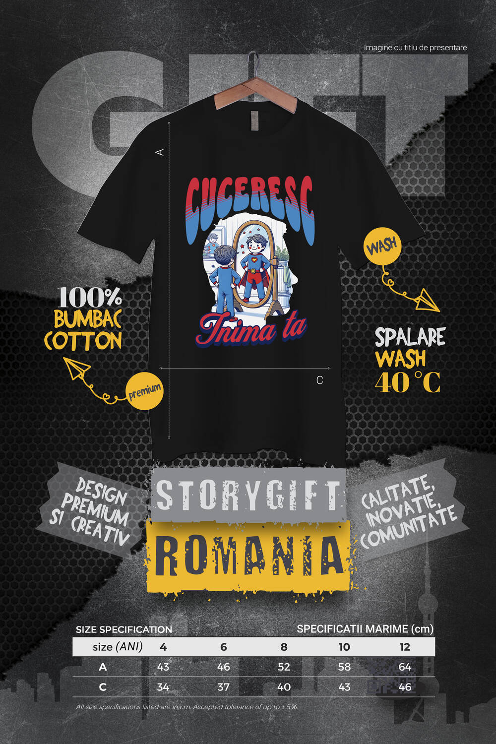 2. Alege pentru cine este tricoul – bărbat, femeie sau copil – și selectează mărimea potrivită pentru un fit perfect!