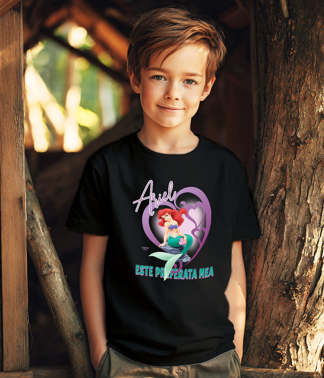 Tricou Copii cu Inima si Visul Ariellei 100% Bumbac, Negru, 10 Ani