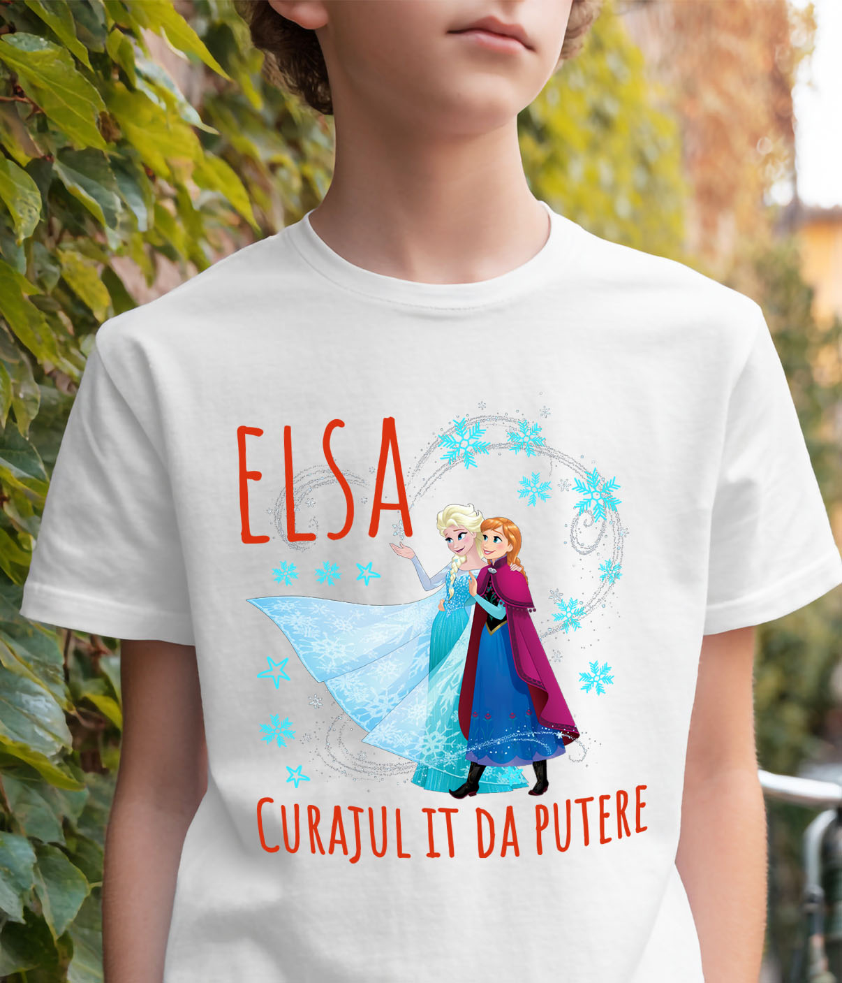 Tricou Copii cu Frozen - Elsa si Ana descopera lumea 100% Bumbac, Alb, 10 Ani