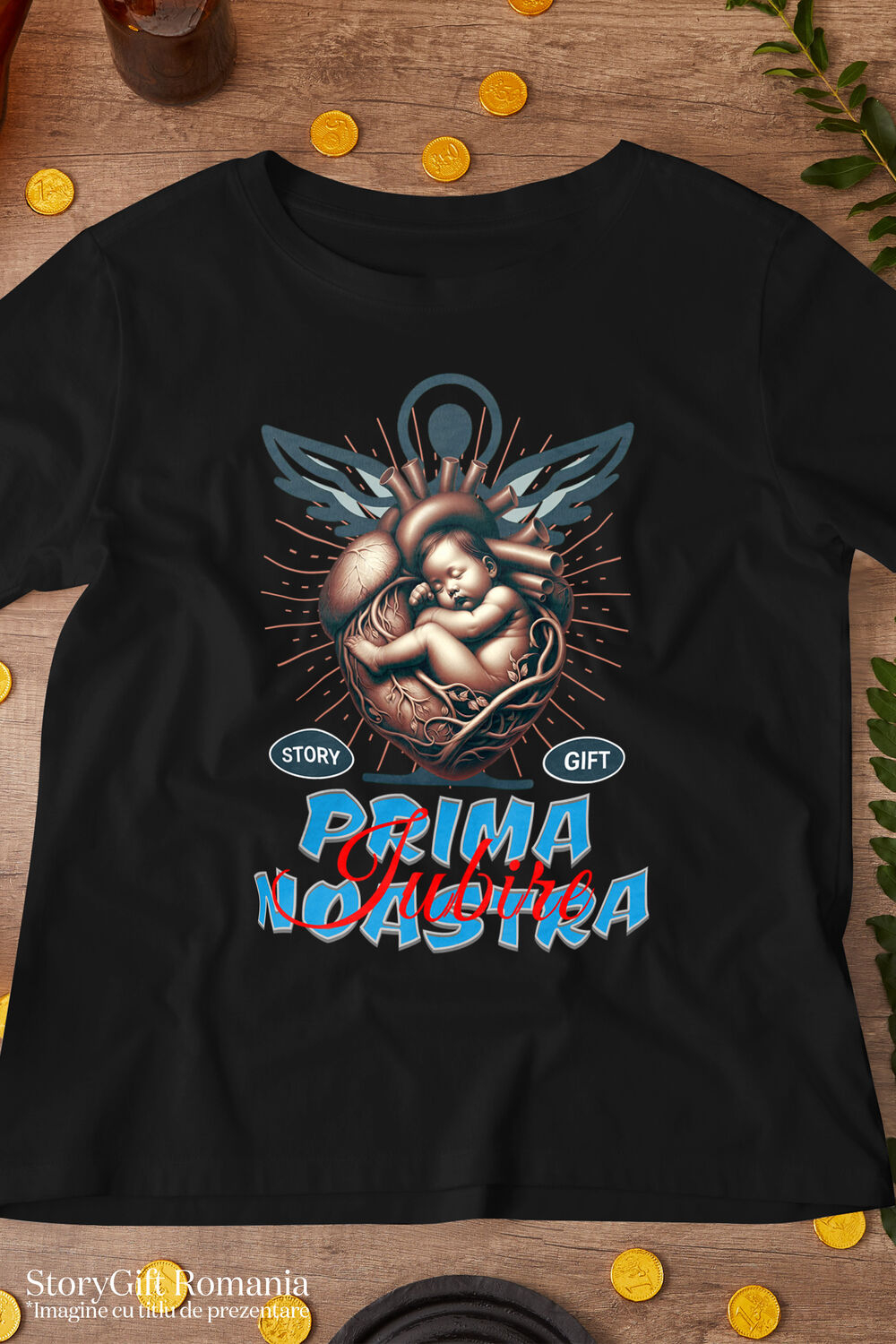 Tricou Copii cu Inima Umana Anatomica Bebe Nou-nascut, Iubire Mama Copii cu imprimeu pe Fata, 100% Bumbac, Negru, 6 Ani