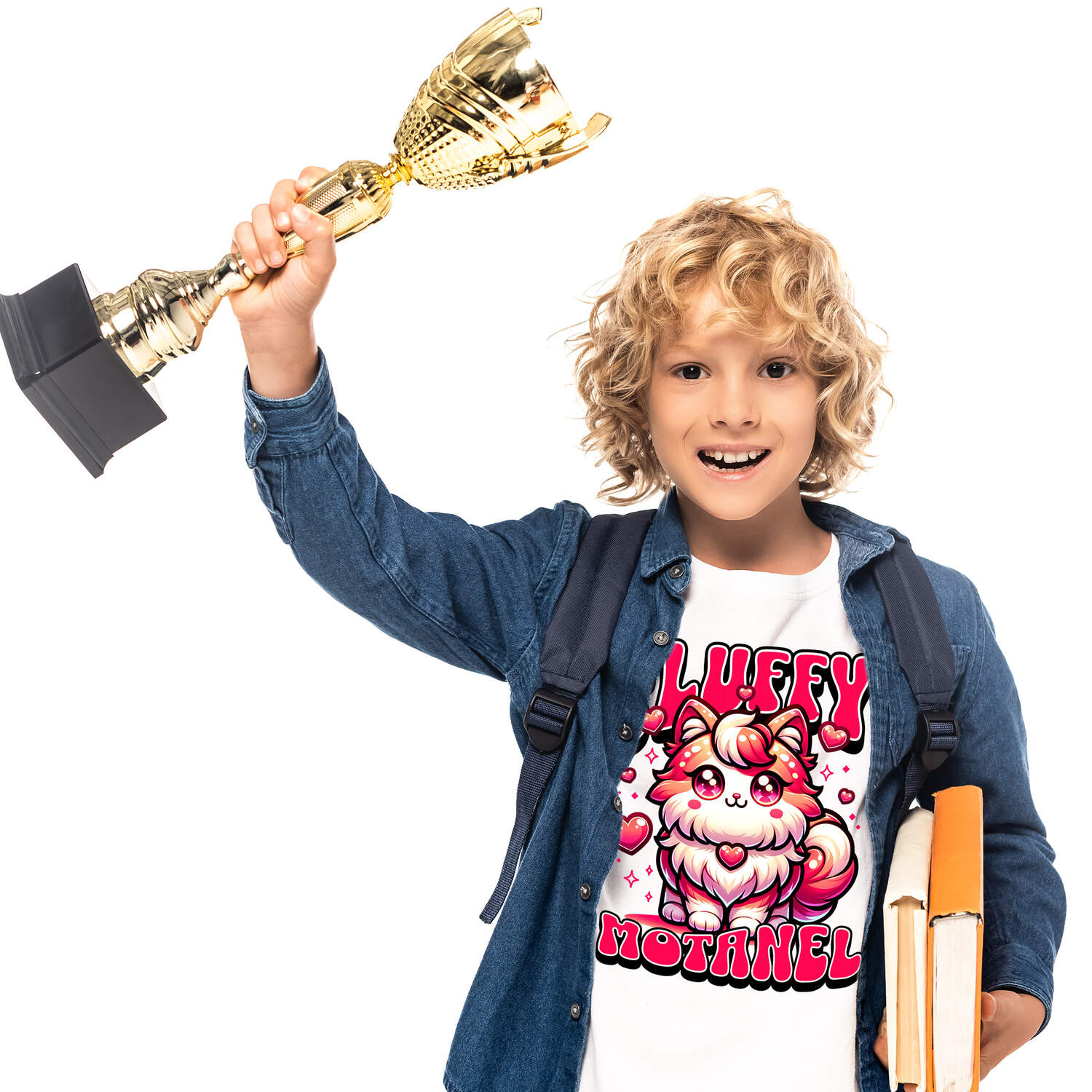 9. Designuri versatile – Un model precum „Cel Mai Bun Tată” poate fi modificat cu ușurință pentru a deveni „Cea Mai Bună Soție”, „Te Iubesc Mult, Andreea!” sau orice alt mesaj dorești. Poți crea tricouri pentru întreaga familie!
