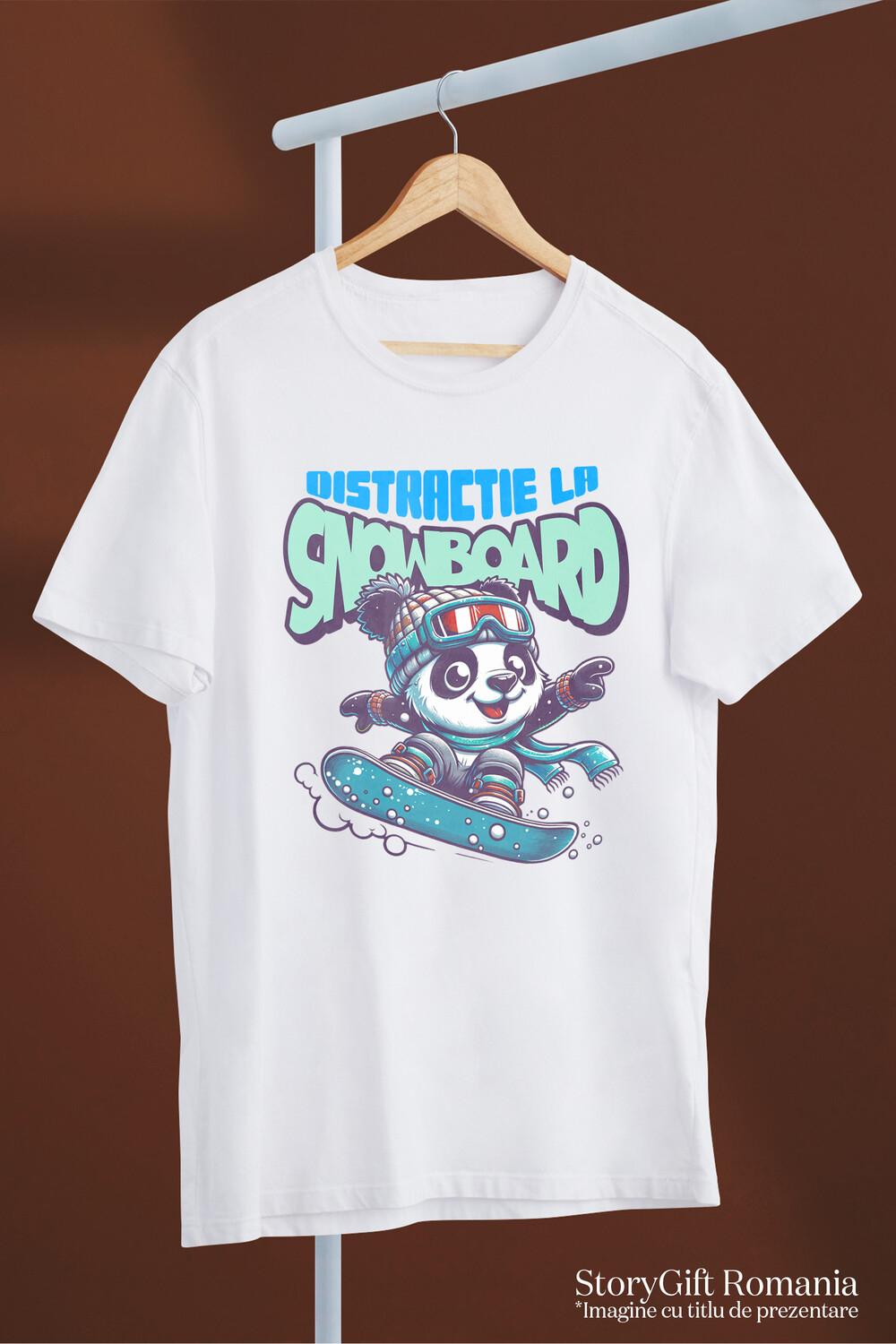 Tricou Copii cu Urs panda cu Echipament Sport Placa De Snowboard Sport De Iarna cu imprimeu pe Fata, 100% Bumbac, Alb, 8 Ani