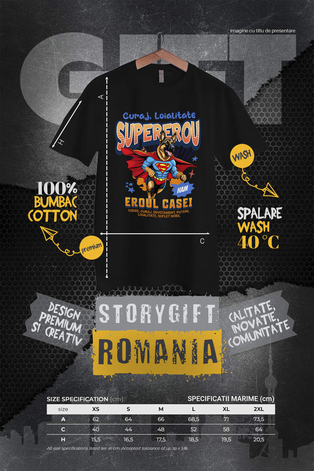 Tricou Femei cu Ciobănesc German / German Shepherd Caine In Costum de SuperMan cu Pelerina, Erou Nocturn, Desene animate, Copii, Iubitorii de Animale cu imprimeu pe Fata, 100% Bumbac, Negru, XL